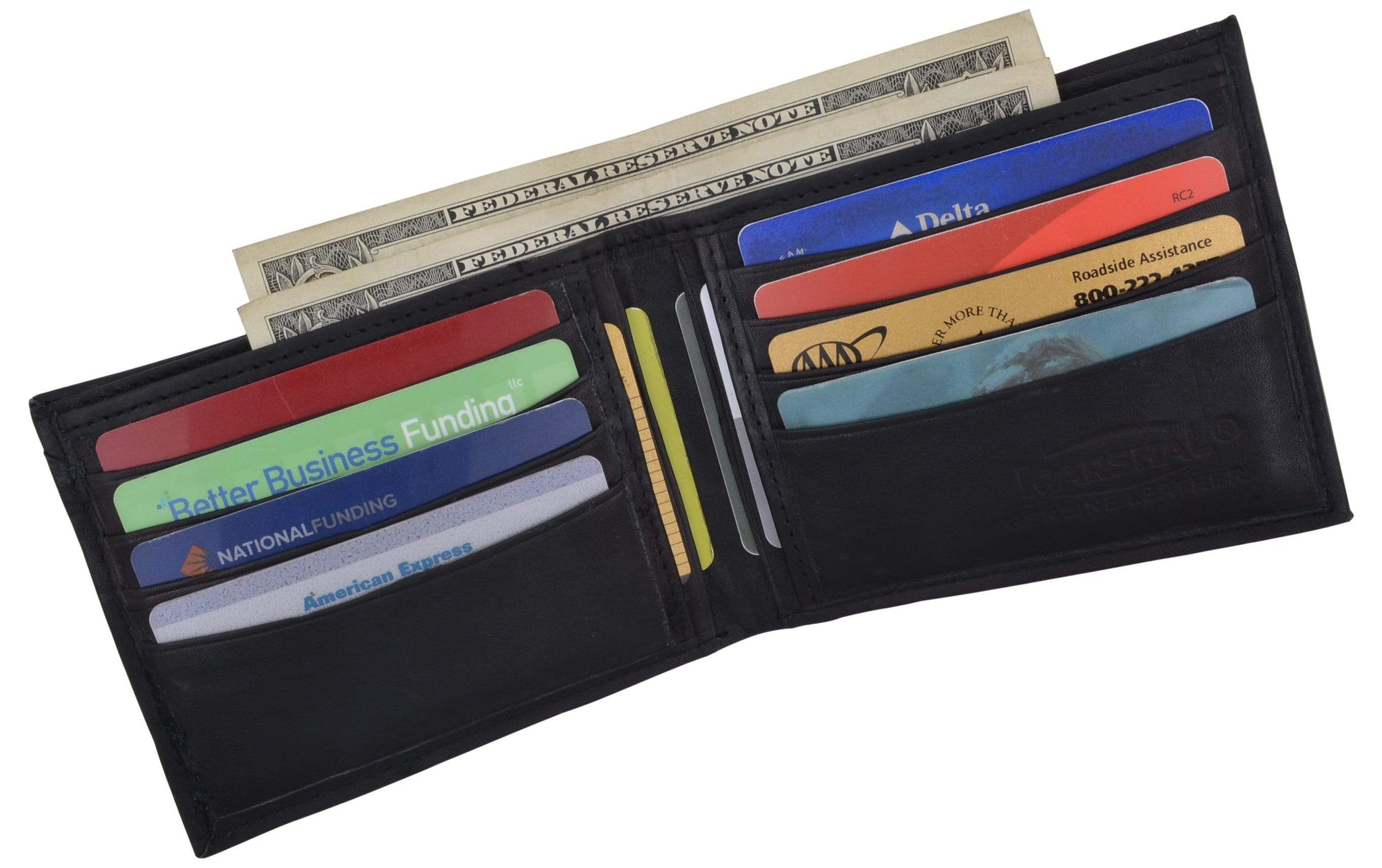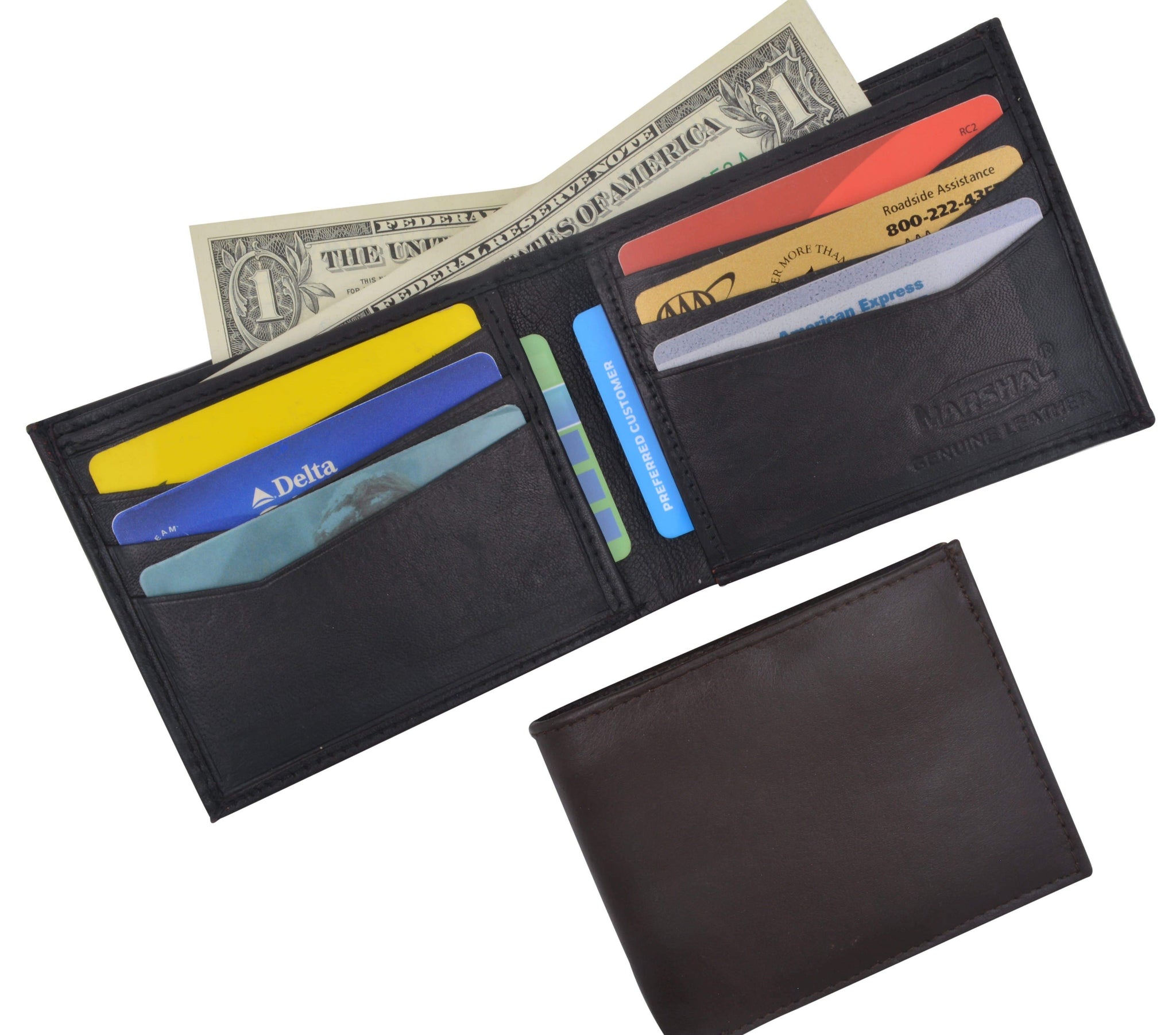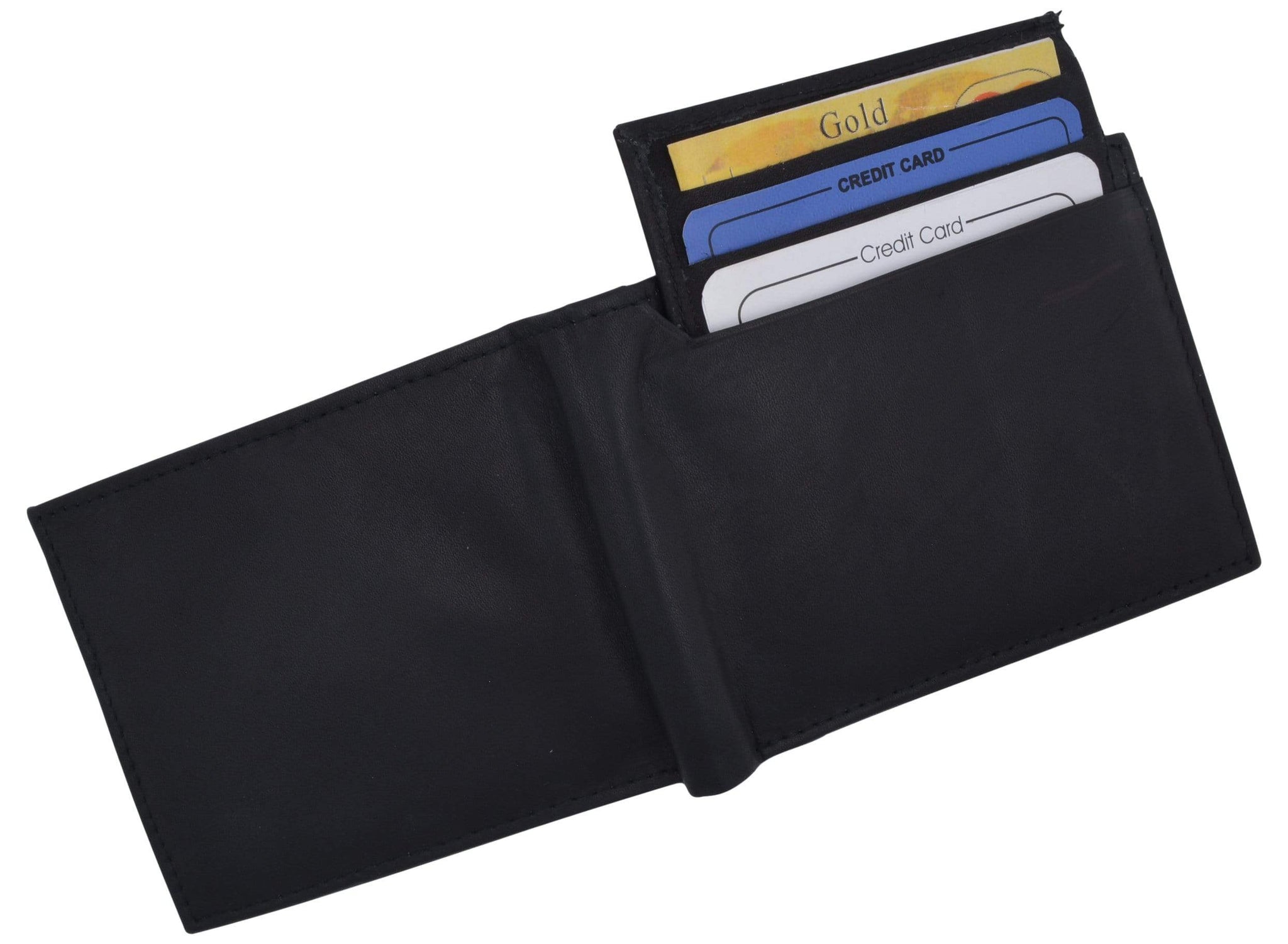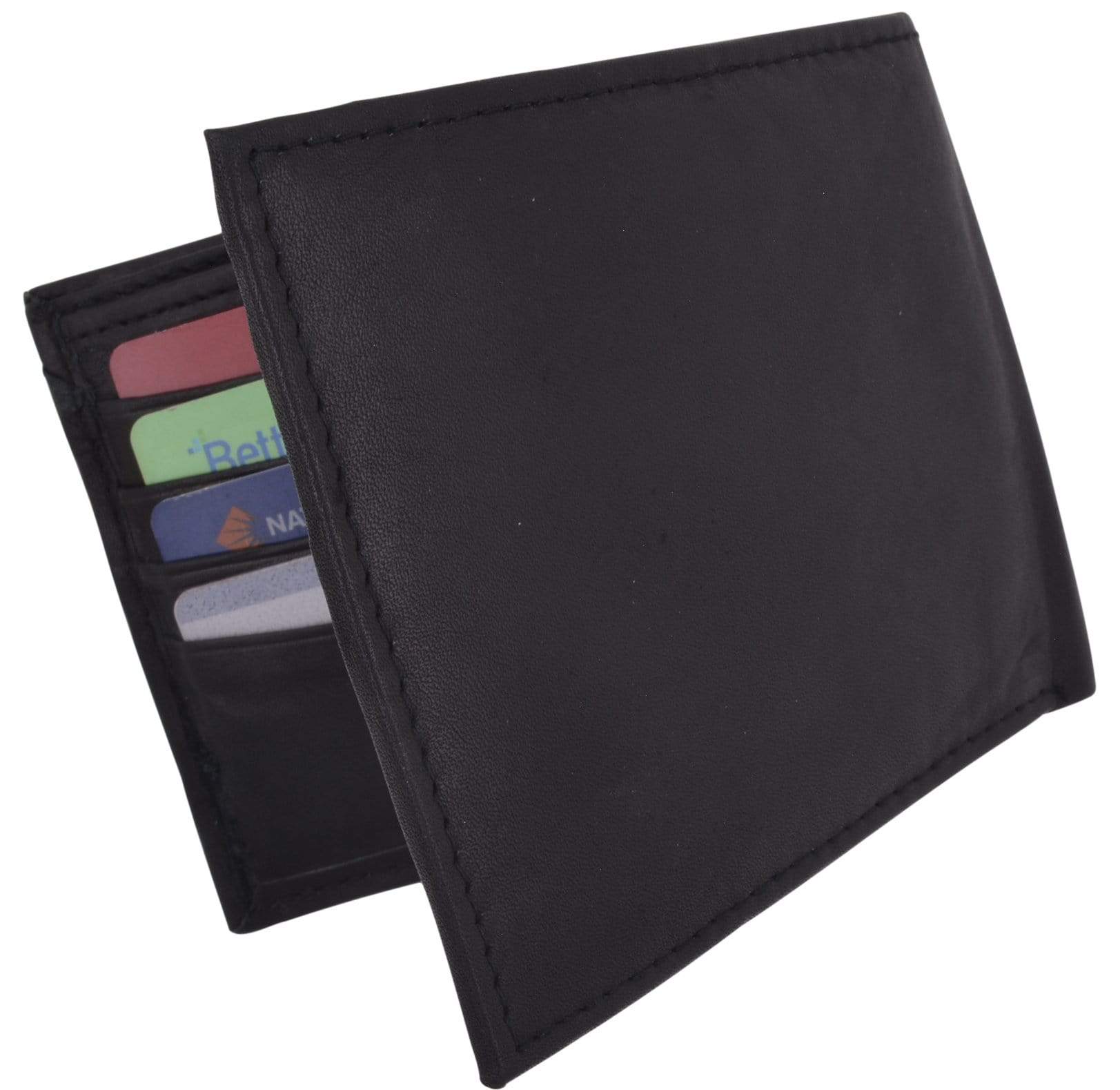 Black Bi-Fold Leather Wallet Slim Compact Design 6+ Credit Card Slots, plus plastic insert for...