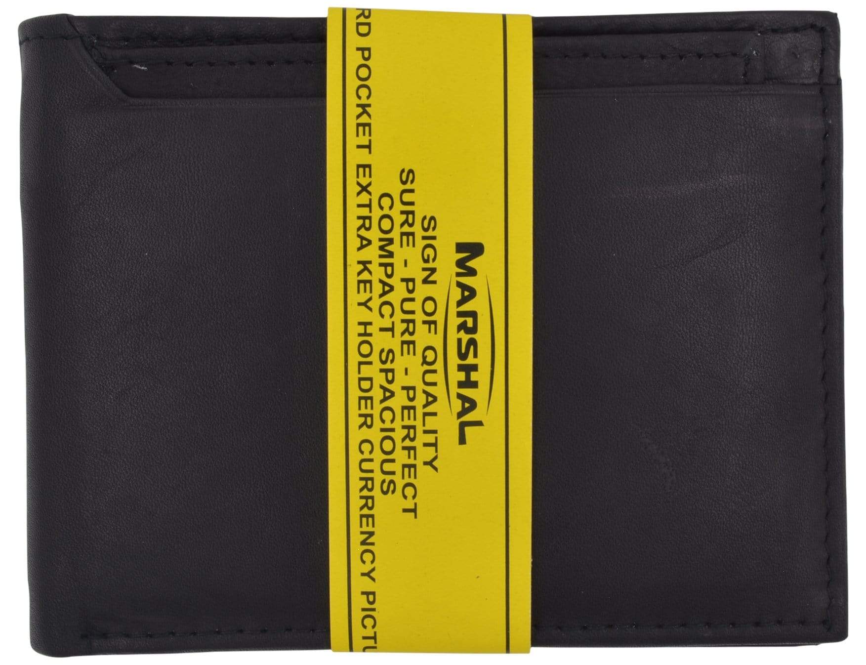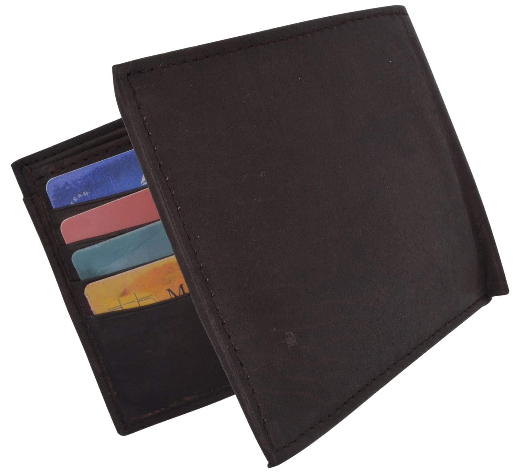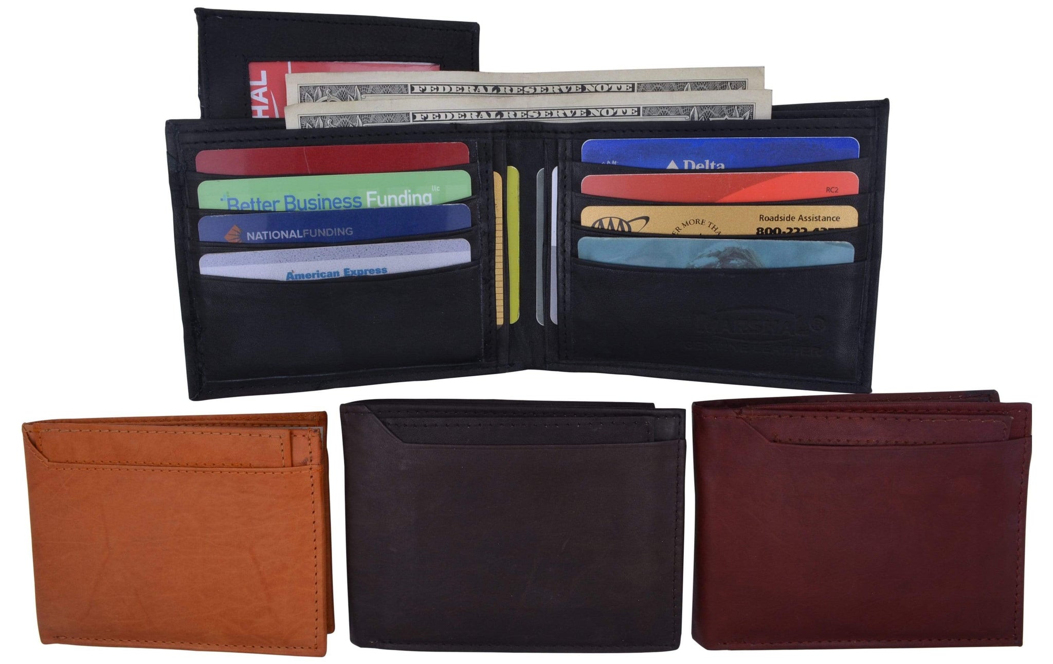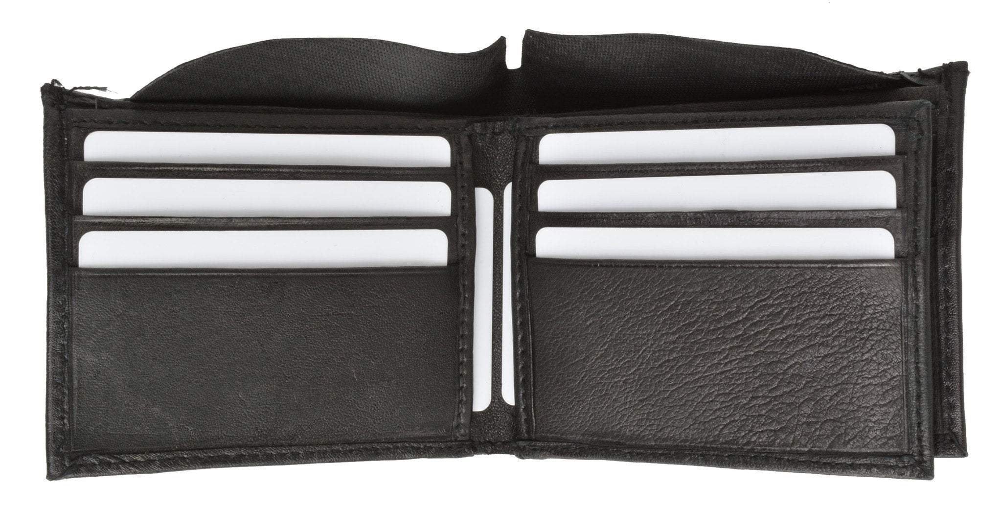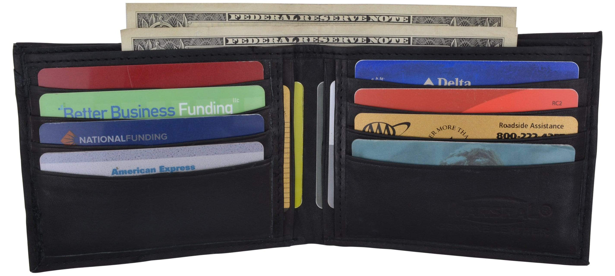 Black Bi-Fold Leather Wallet Slim Compact Design 6+ Credit Card Slots, plus plastic insert for...