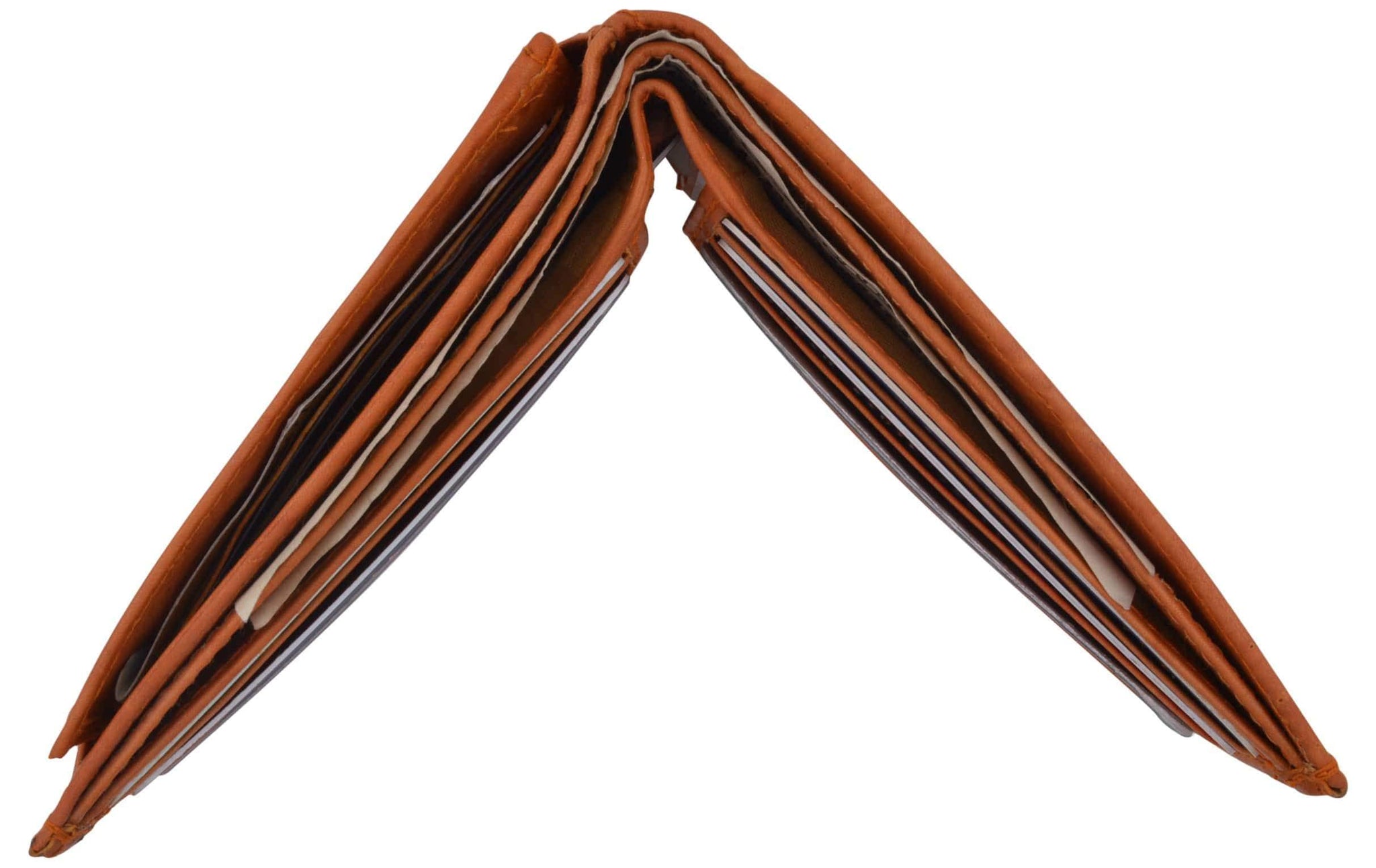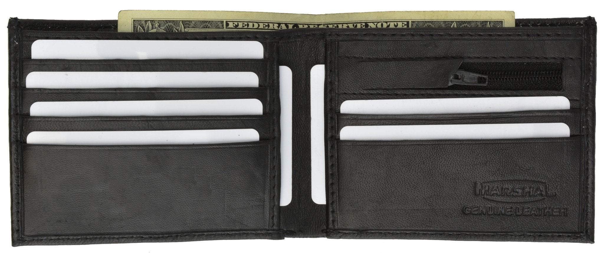 Material: Genuine Leather Bi-foldCredit Card Slots: 9+I.D. Window: Yes (Internal; Flap)Currency Pocket: Divider; Hideaway zippered...