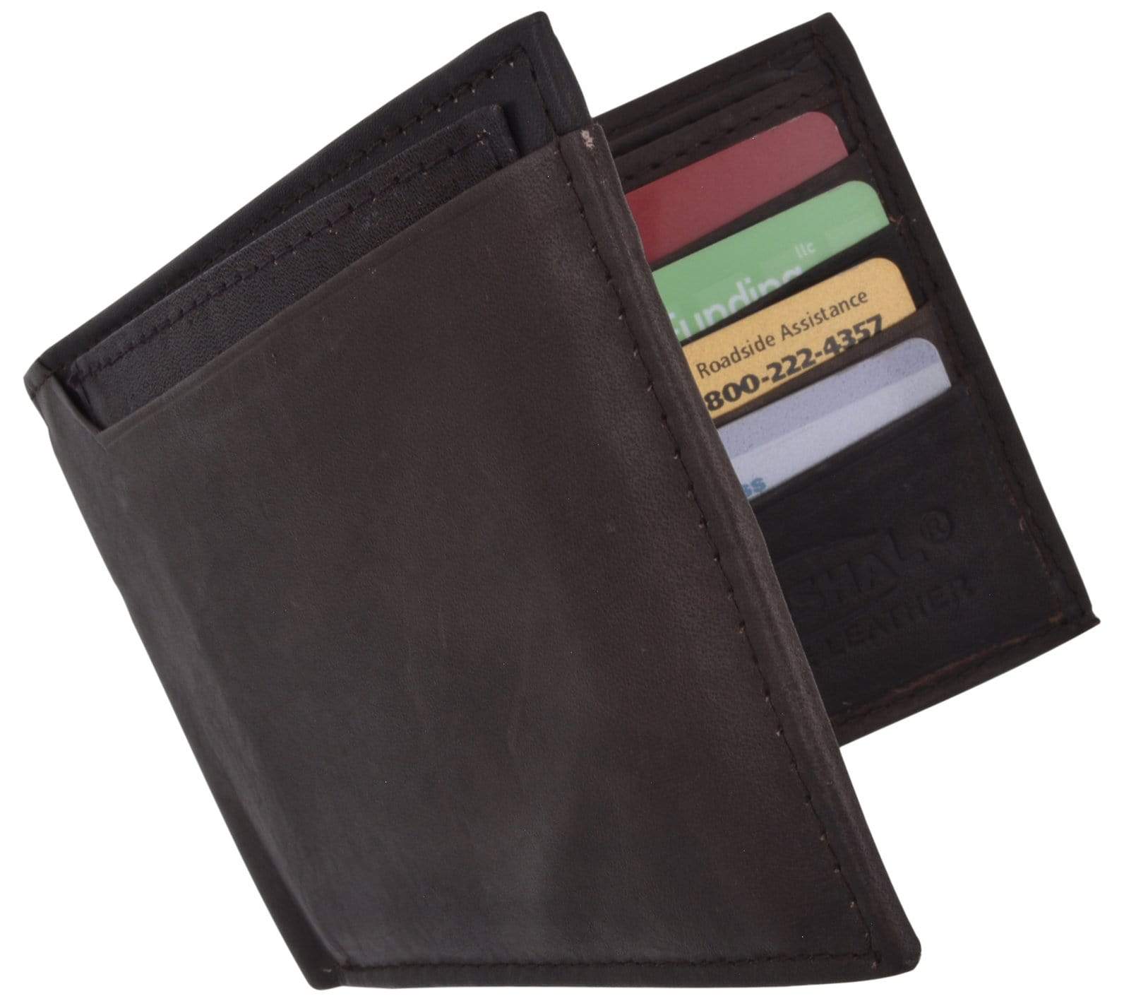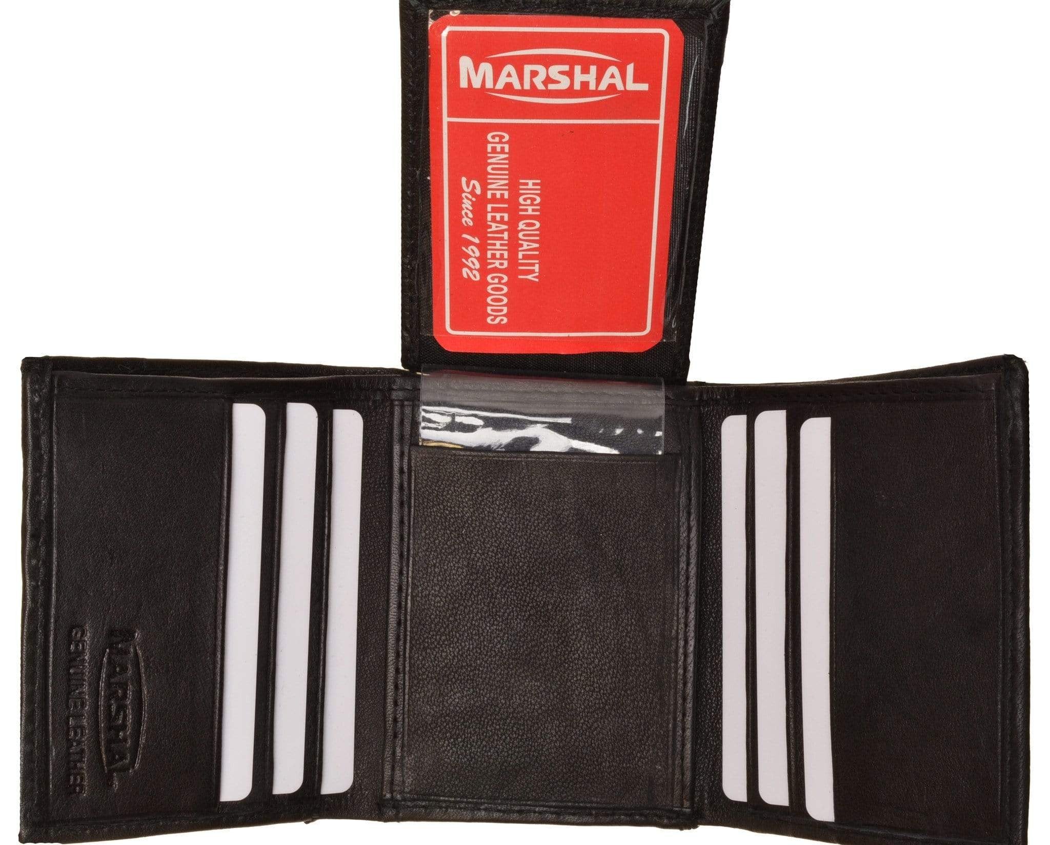 Material: Genuine Leather Tri-foldCredit Card Slots: 7+I.D. Window: Yes (Internal & Flip-down)Currency Pocket: Divider; Hideaway...