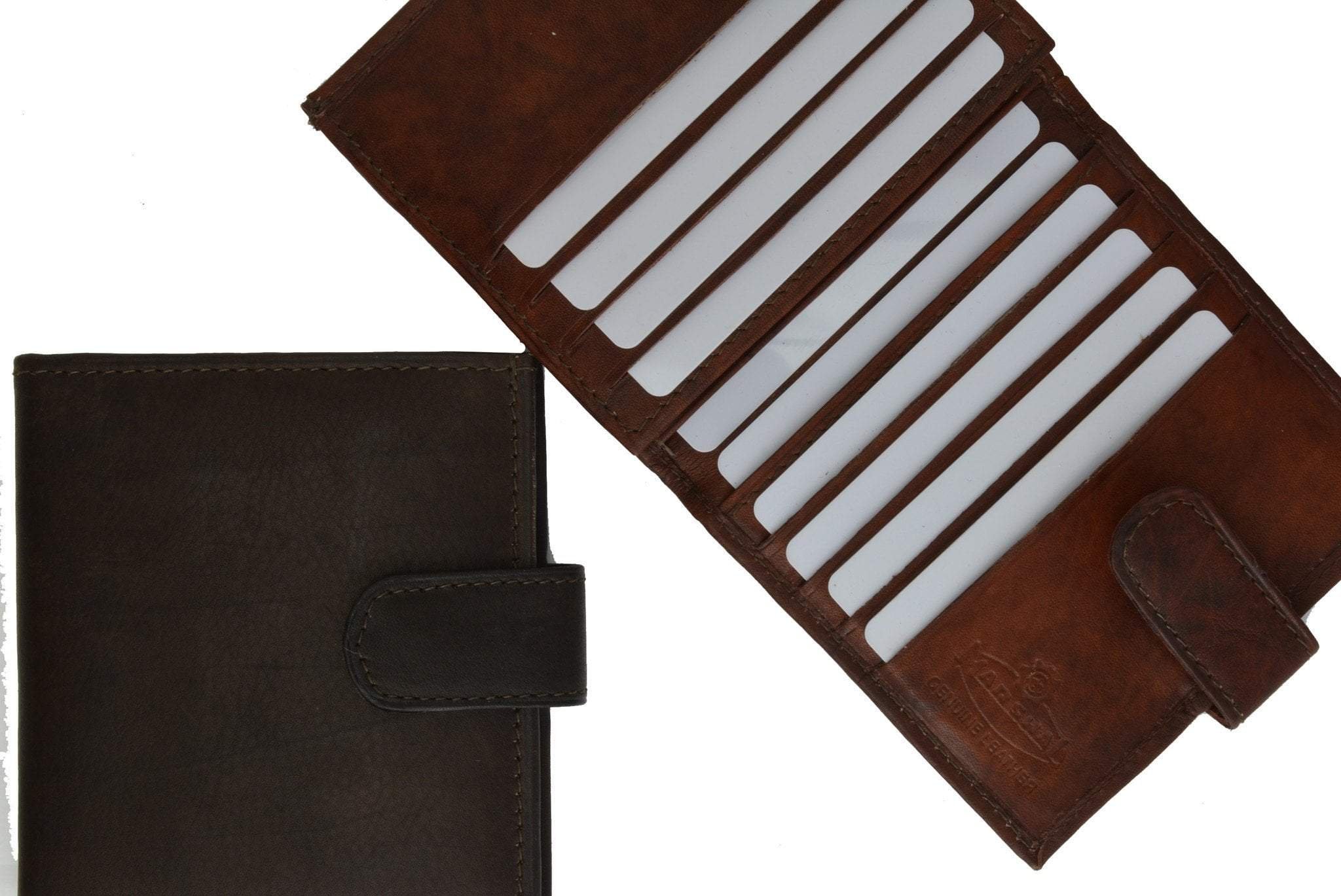 Material: Genuine Leather Bi-foldCredit Card Slots: 14+Other features: External Snap Enclosure