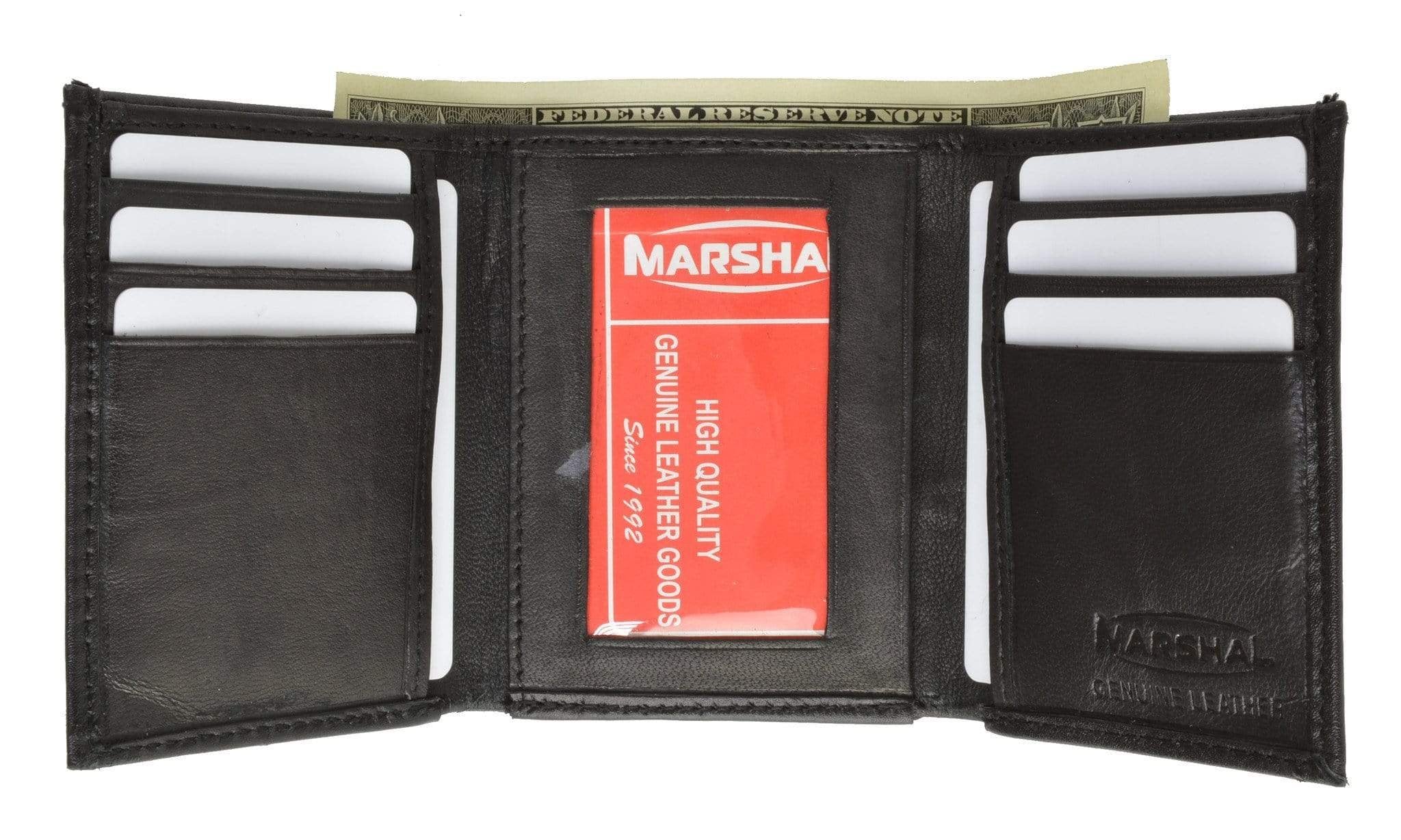 Material: Genuine Leather Tri-foldCredit Card Slots: 6+I.D. Window: Yes (Internal)Currency Pocket: DividerOther features: Hidden credit...