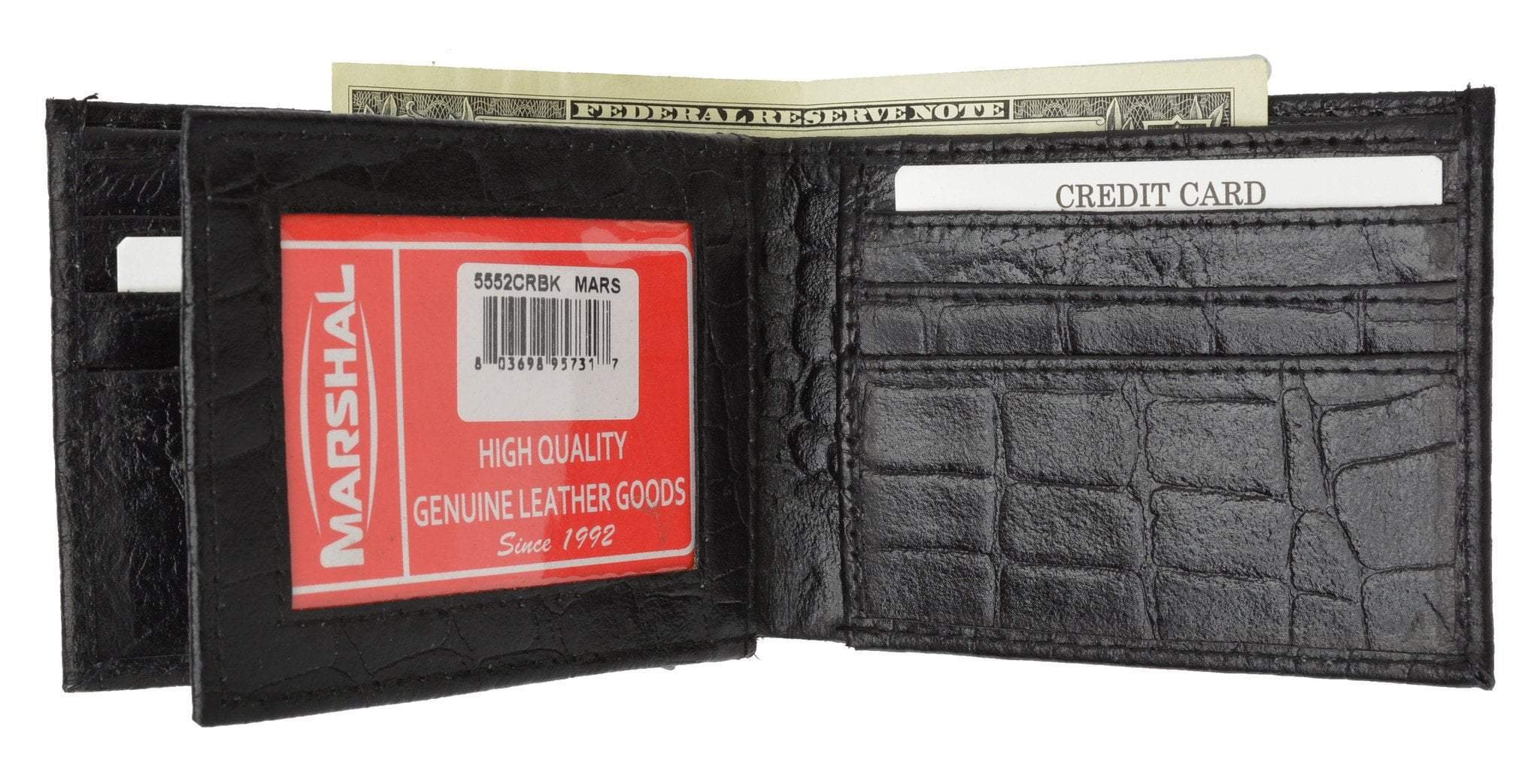 Material: Genuine Leather Tri-foldCredit Card Slots: 6+I.D. Window: Yes (Internal)Currency Pocket: DividerOther features: Alligator pattern...