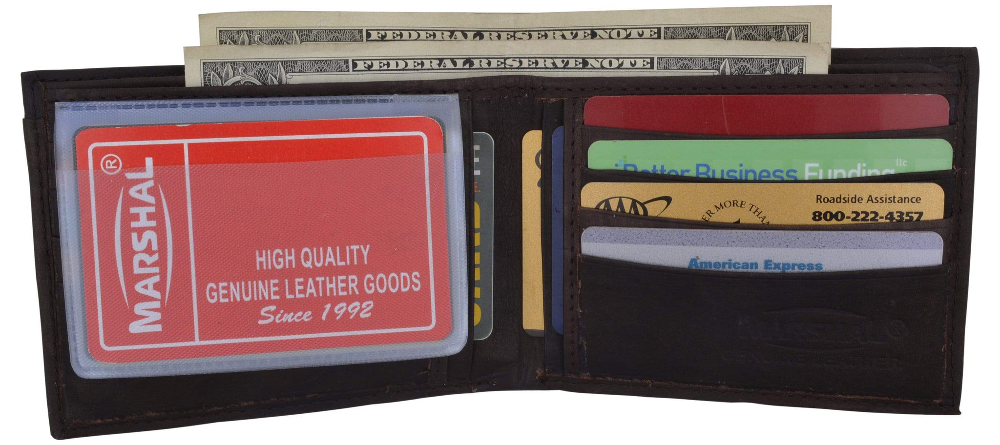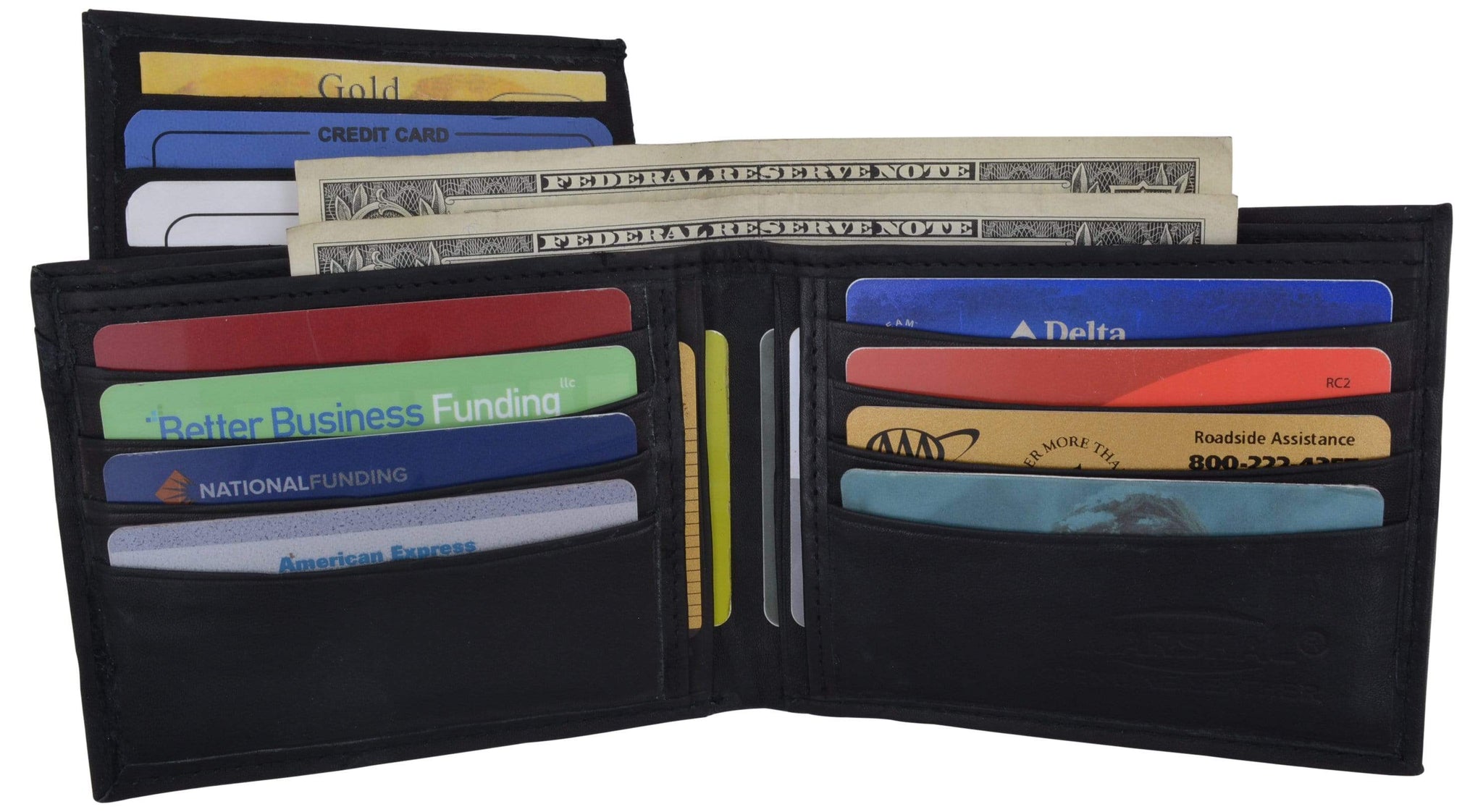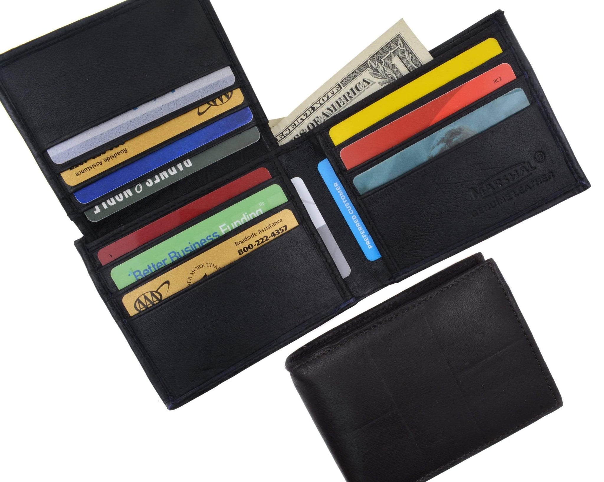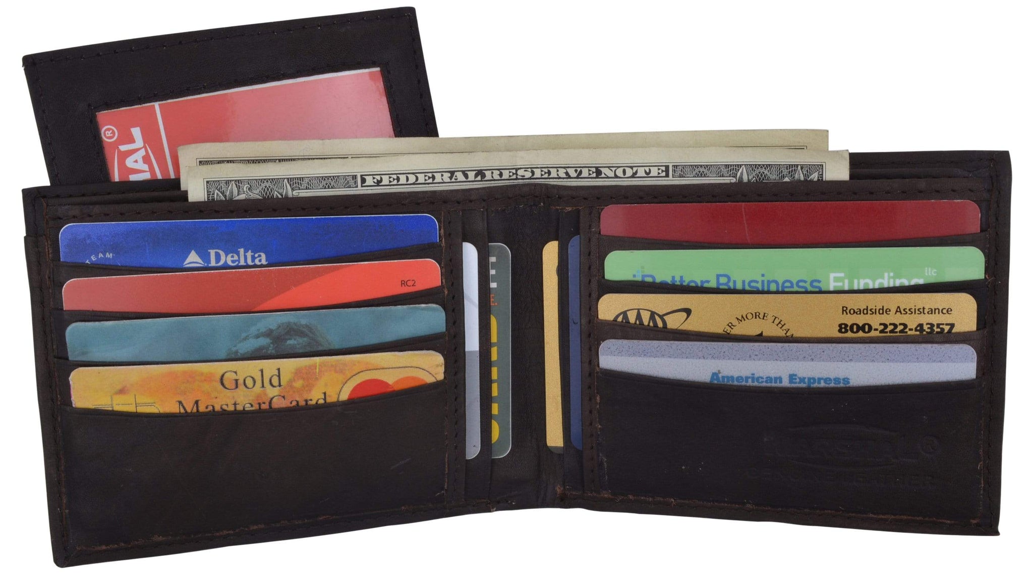 Material: Genuine Leather Bi-foldCredit Card Slots: 15+I.D. Window: Yes (Removable I.D. Window)Currency Pocket: 2 Bill...