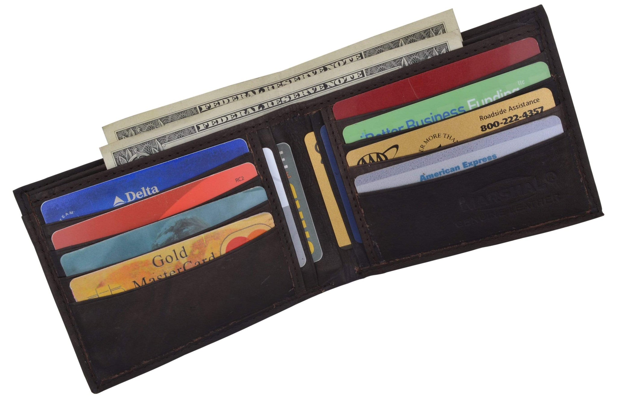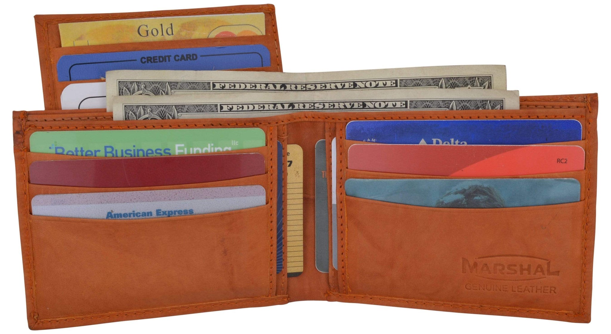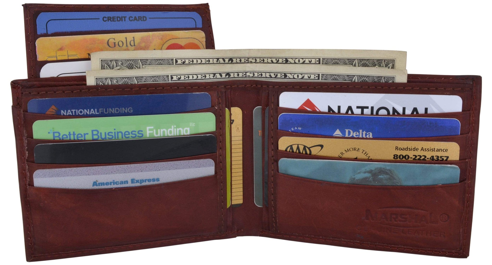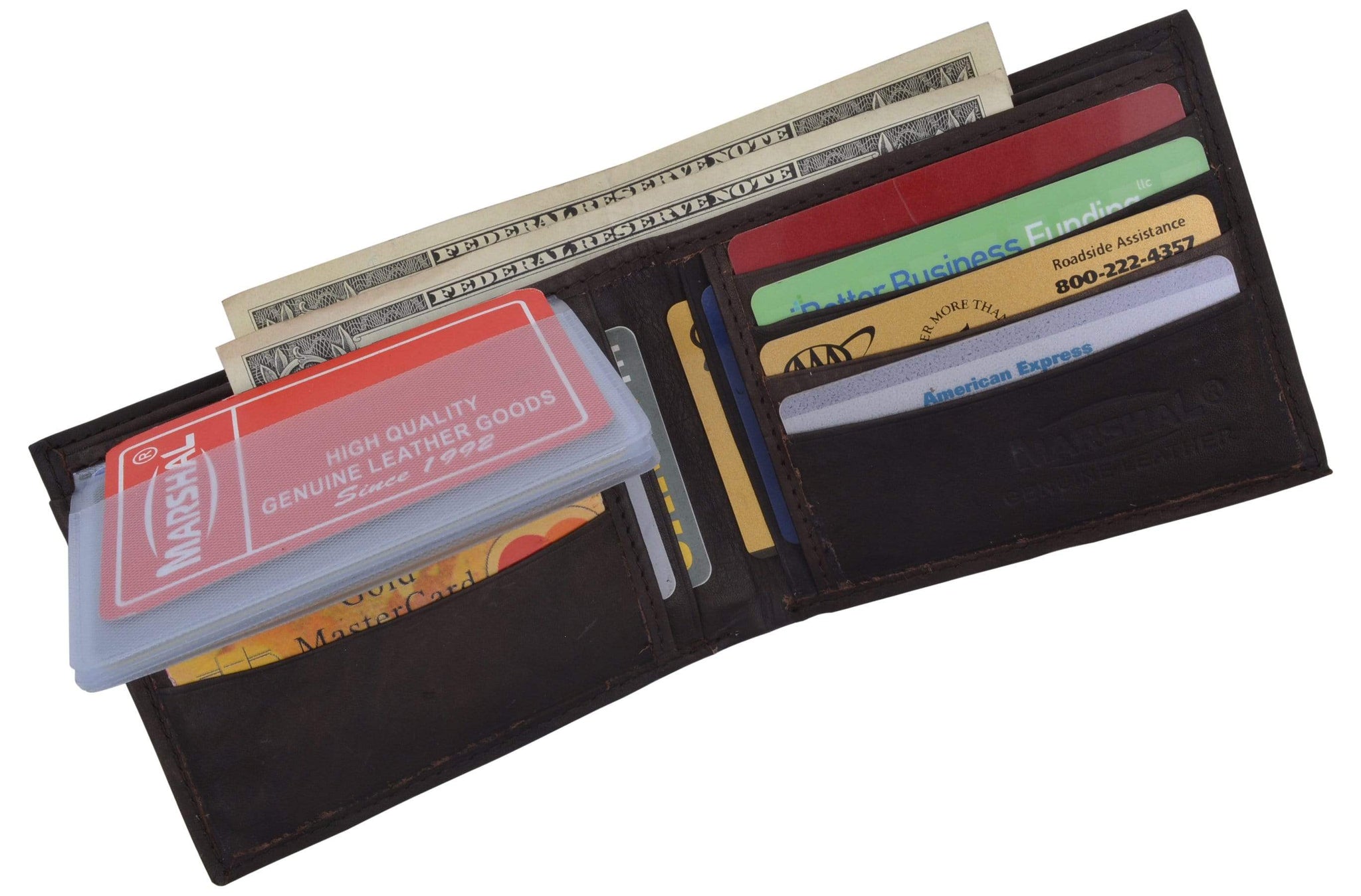 Material: Genuine Leather Bi-foldCredit Card Slots: 15+I.D. Window: Yes (Removable I.D. Window)Currency Pocket: 2 Bill...