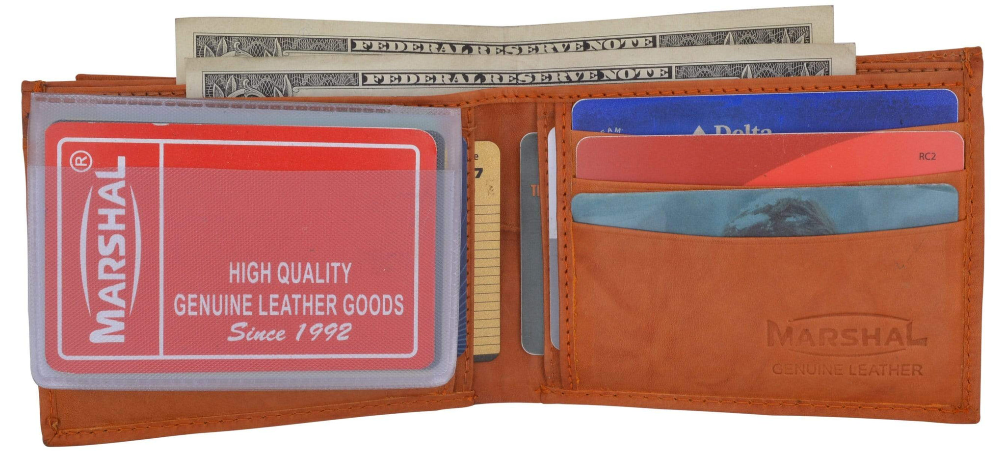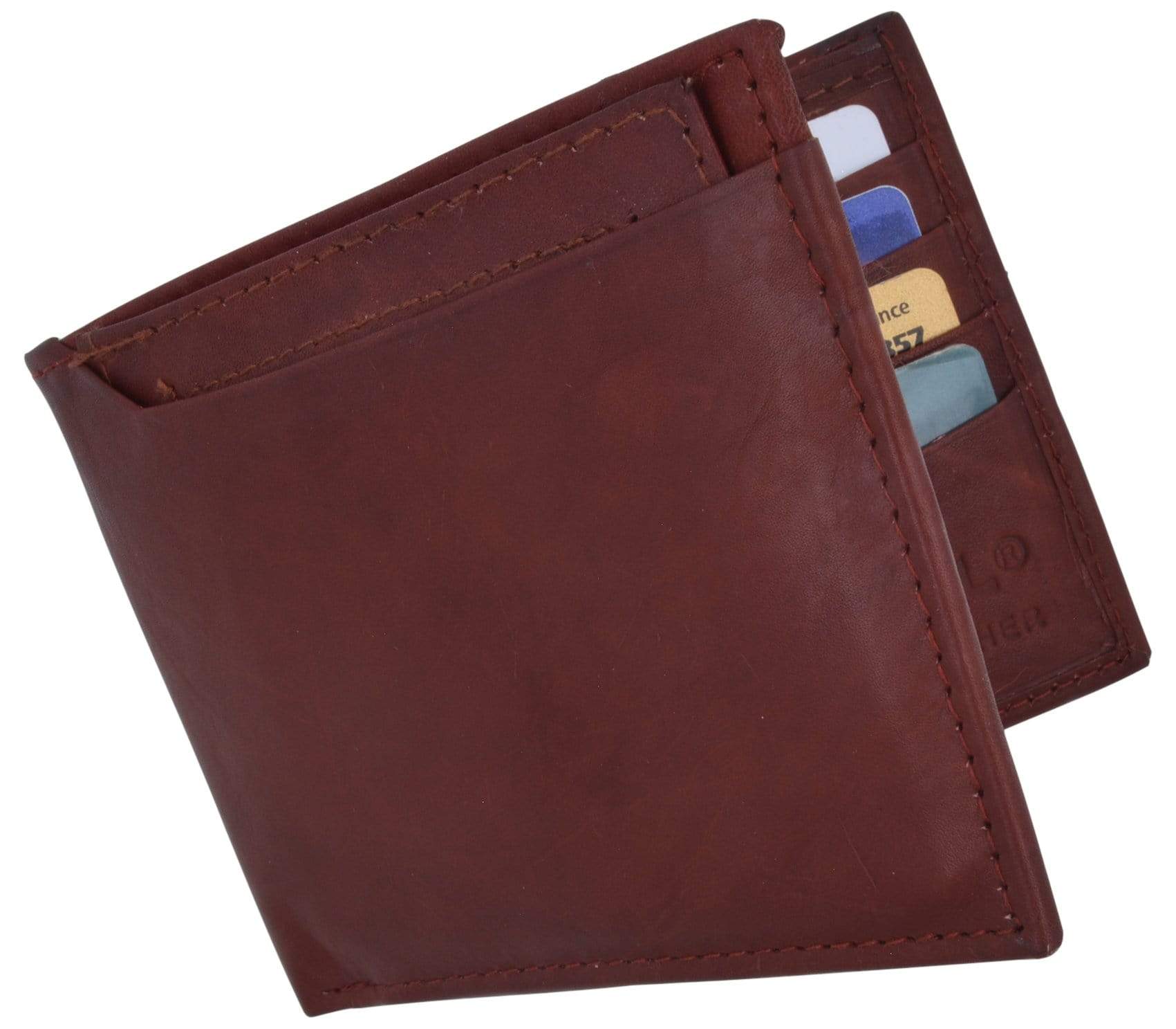 Material: Genuine Leather Bi-foldCredit Card Slots: 6+I.D. Window: Yes (Internal; Flip-Up)Currency Pocket: DividerOther features: 0.75"...