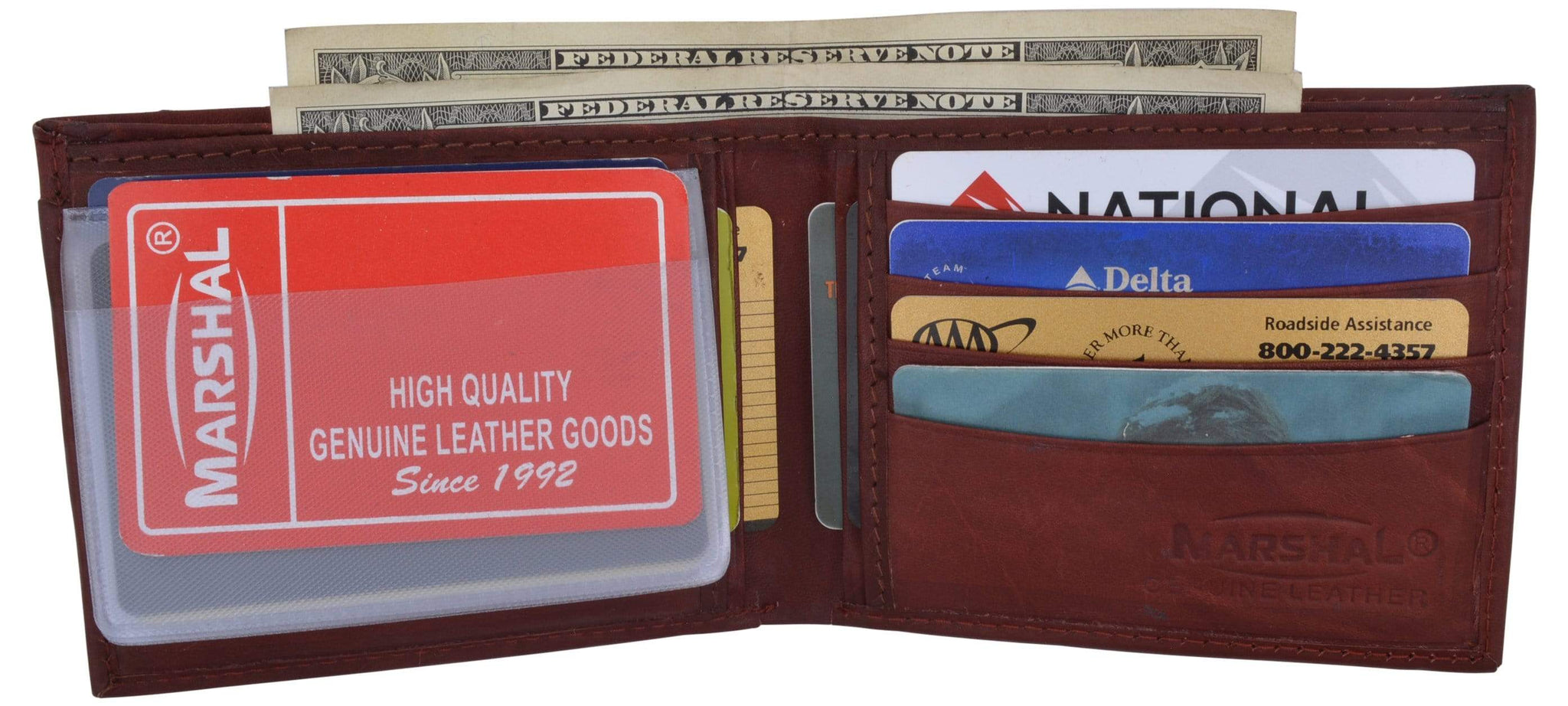 Material: Genuine Leather Bi-foldCredit Card Slots: 6+I.D. Window: Yes (2; Internal & Flip-up)Currency Pocket: DividerOther...