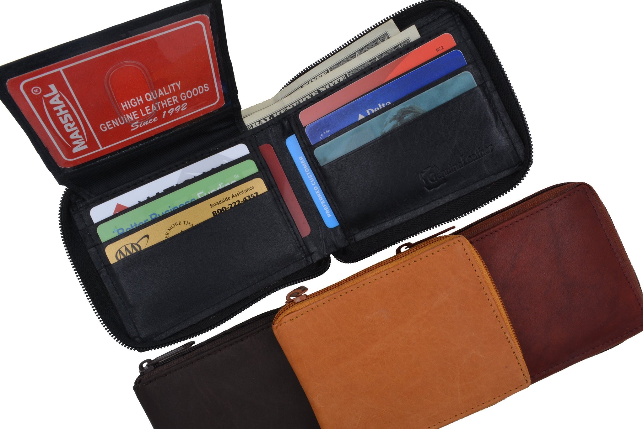 Mens zip-around bifold wallet Handcrafted genuine leather 9+ credit card slots, 2 additional slots 1...