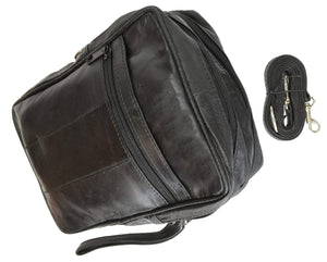 Material: Genuine LeatherSize: 7.5"; x 9.5" approxOther features: Five zippered pockets; Attachable strap