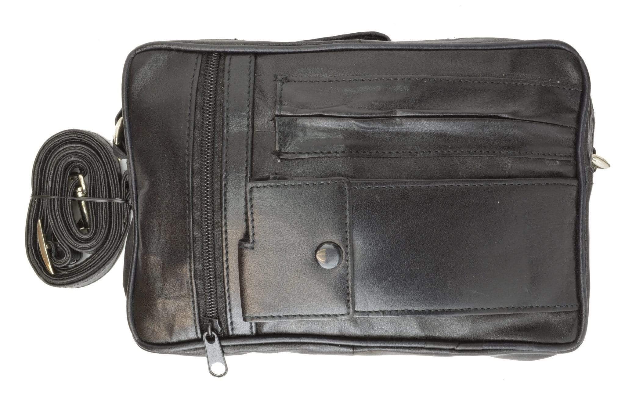 Material: Genuine LeatherSize: 7.5"; x 9.5" approxOther features: Five zippered pockets; Attachable strap