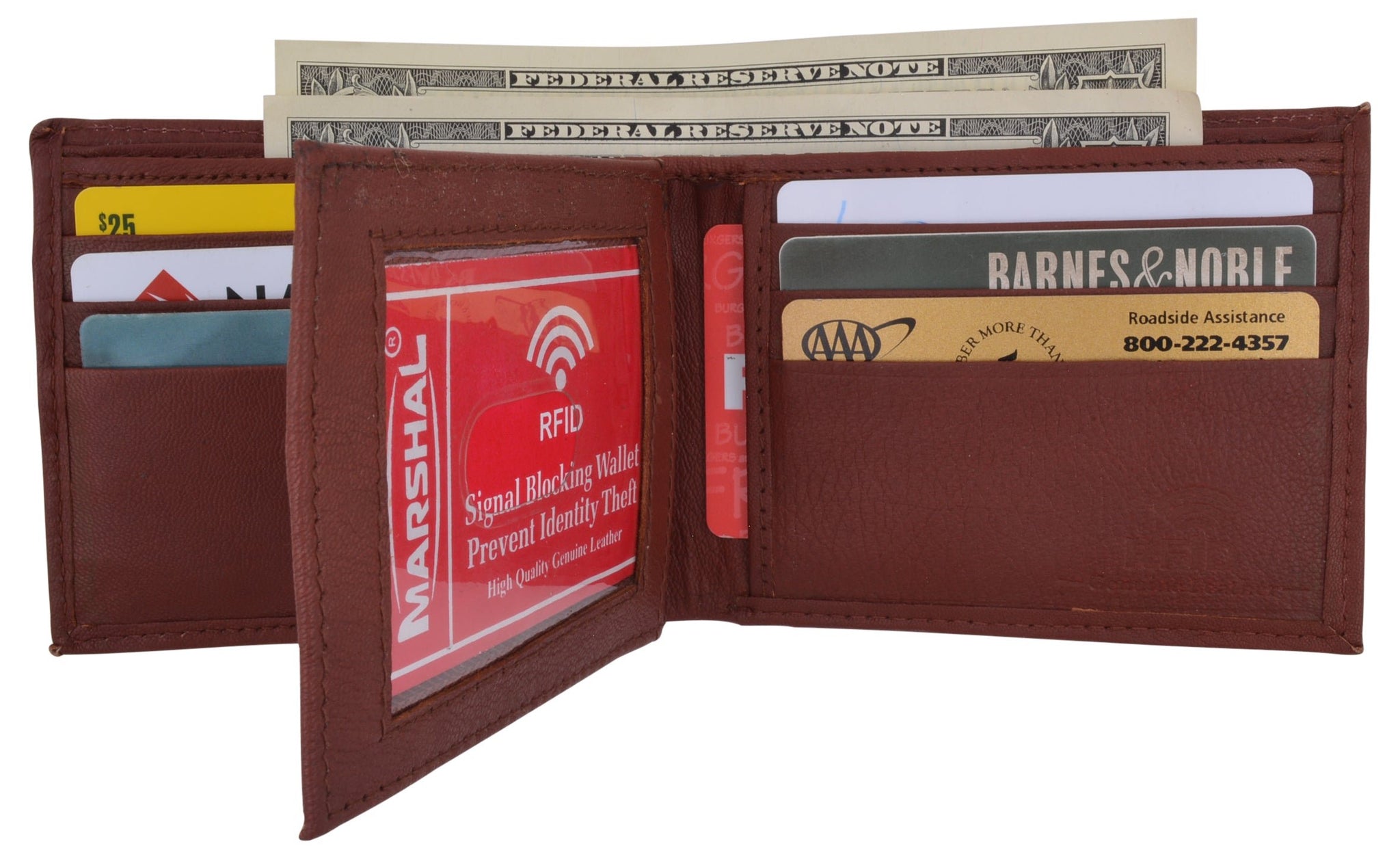 Product details Marshal's mens soft lambskin leather slim bi-fold wallet. RFID signal blocking lining helps...