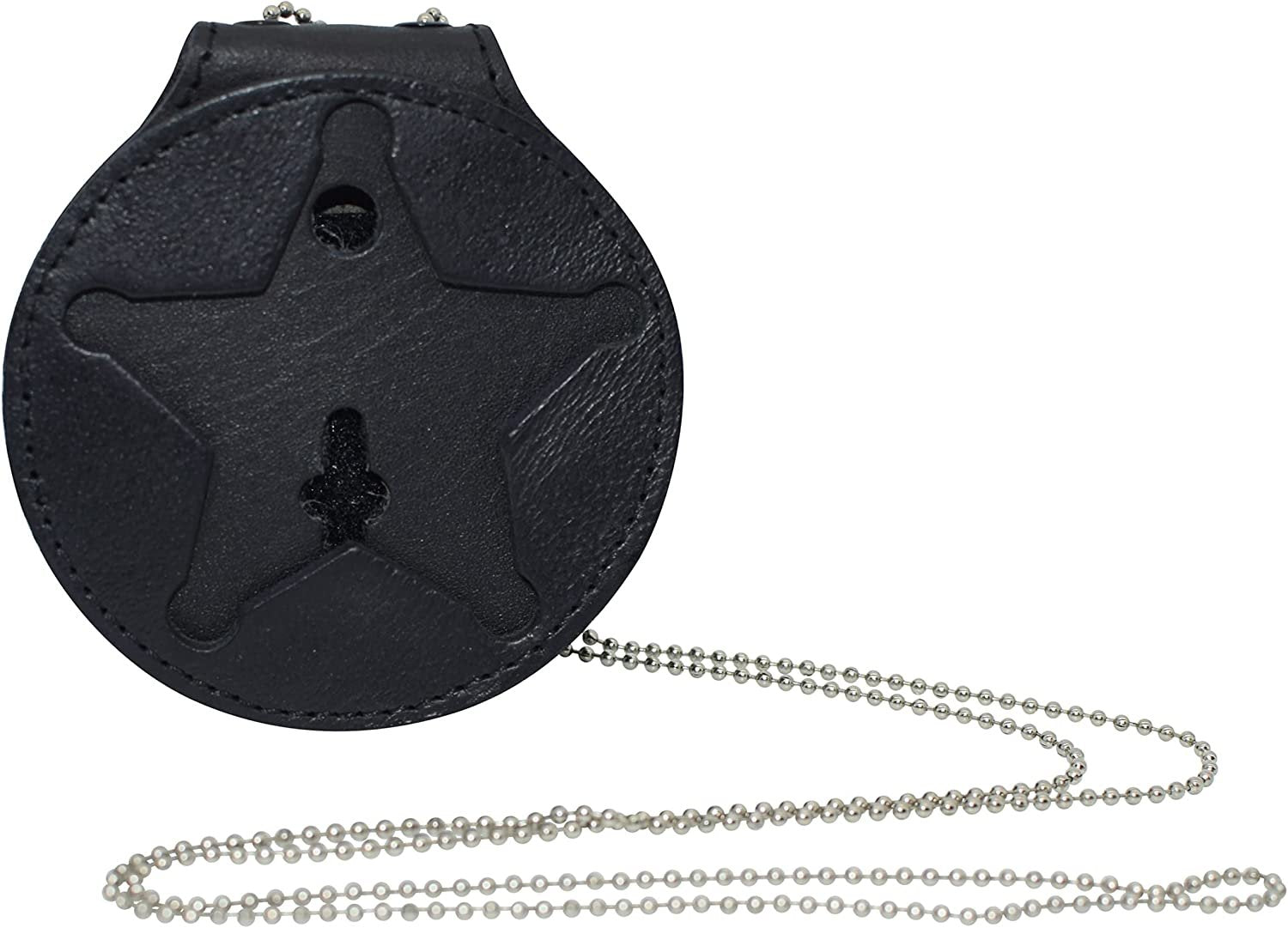 RFID Blocking Leather Shield Wallets Florida Sheriff Five-Point Star Badge Holder and Neck Chain Black