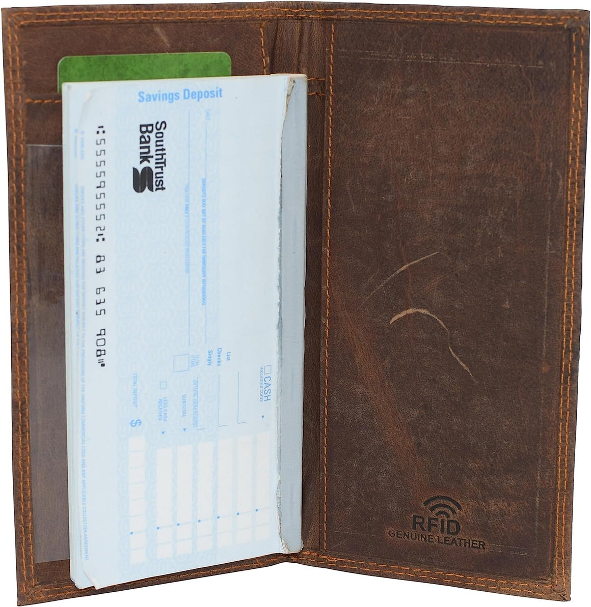 RFID Blocking Vintage Leather Slim Bifold Standard Checkbook Cover Holder for Men & Women