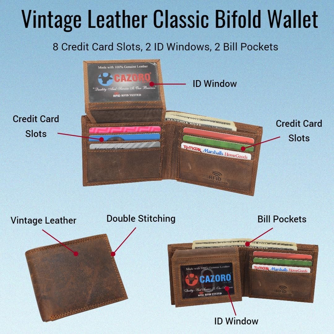 Brand: CazoroDetails: High Quality Vintage Leather Wallet Protect your RFID Credit Cards, Debit Cards, ID...
