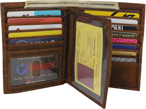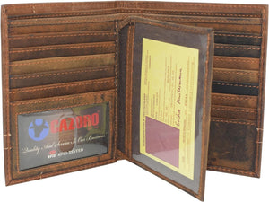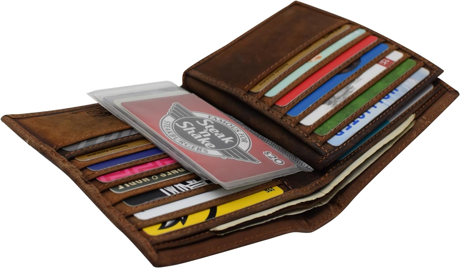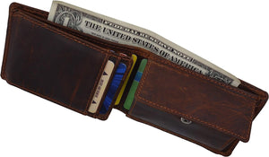 Vintage Leather Slim Hipster Bifold Wallets for Men Large Bifold Wallet- RFID Protection