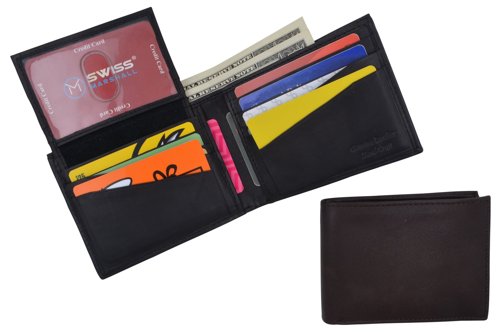 Brand: Swiss MarshallDetails: CAPACITY: This beautiful bifold leather wallet has 7 credit card slots, 1...