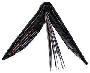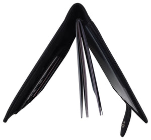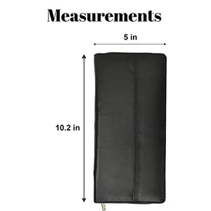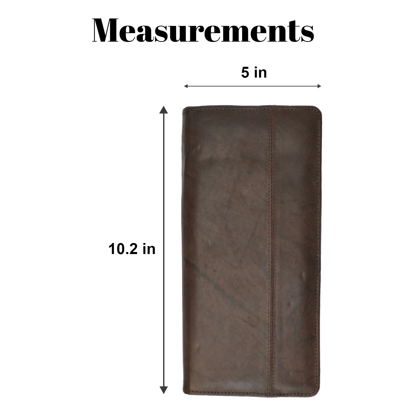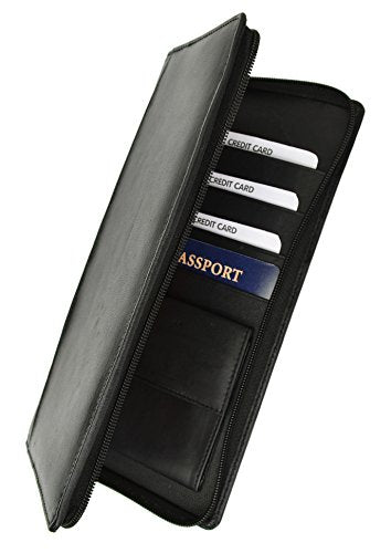 Material: Genuine LeatherSize: 9.25" X 4.75" (folded) approxCredit Card Slots: 2+Other features: Five separate sleeves; Zippered...