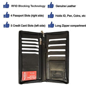 GENUINE LEATHER ZIP AROUND TRAVEL COMPANION Simplifies your travel Slots for cash and credit cards...
