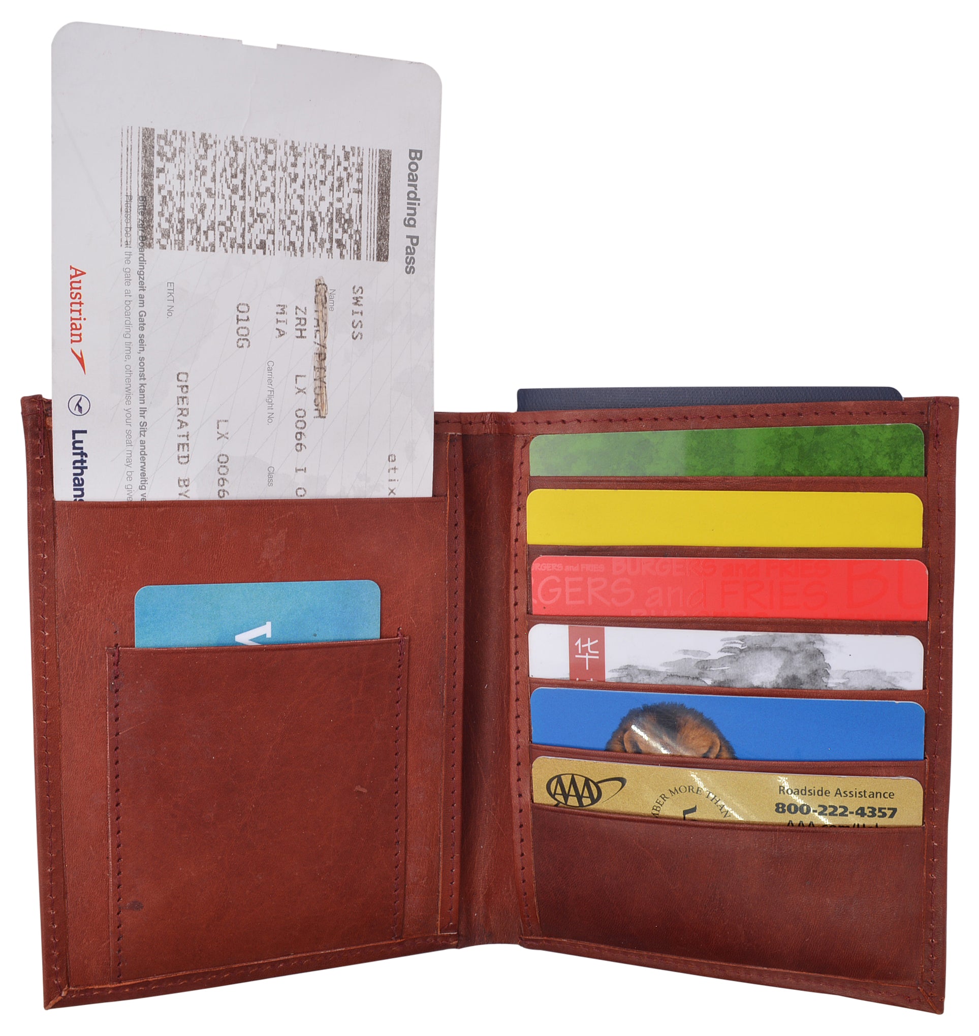 Material: Genuine LeatherCard Slots: 5+Other features: Two clear pockets for either passport or baggage information;...