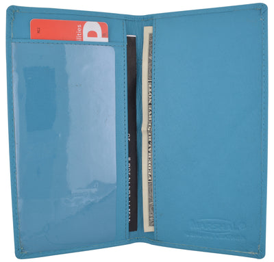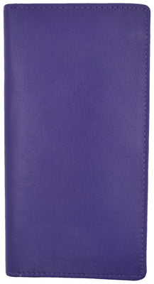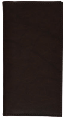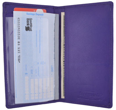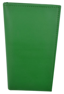Protect your personal checks with this durable leather checkbook cover. The cover has an inbuilt writing shield for writing duplicate checks. Made from real leather, this cover is sure to last and last. This checkbook cover is designed for traditional top tear checks. Inside slip pocket to fit your checkbook register.