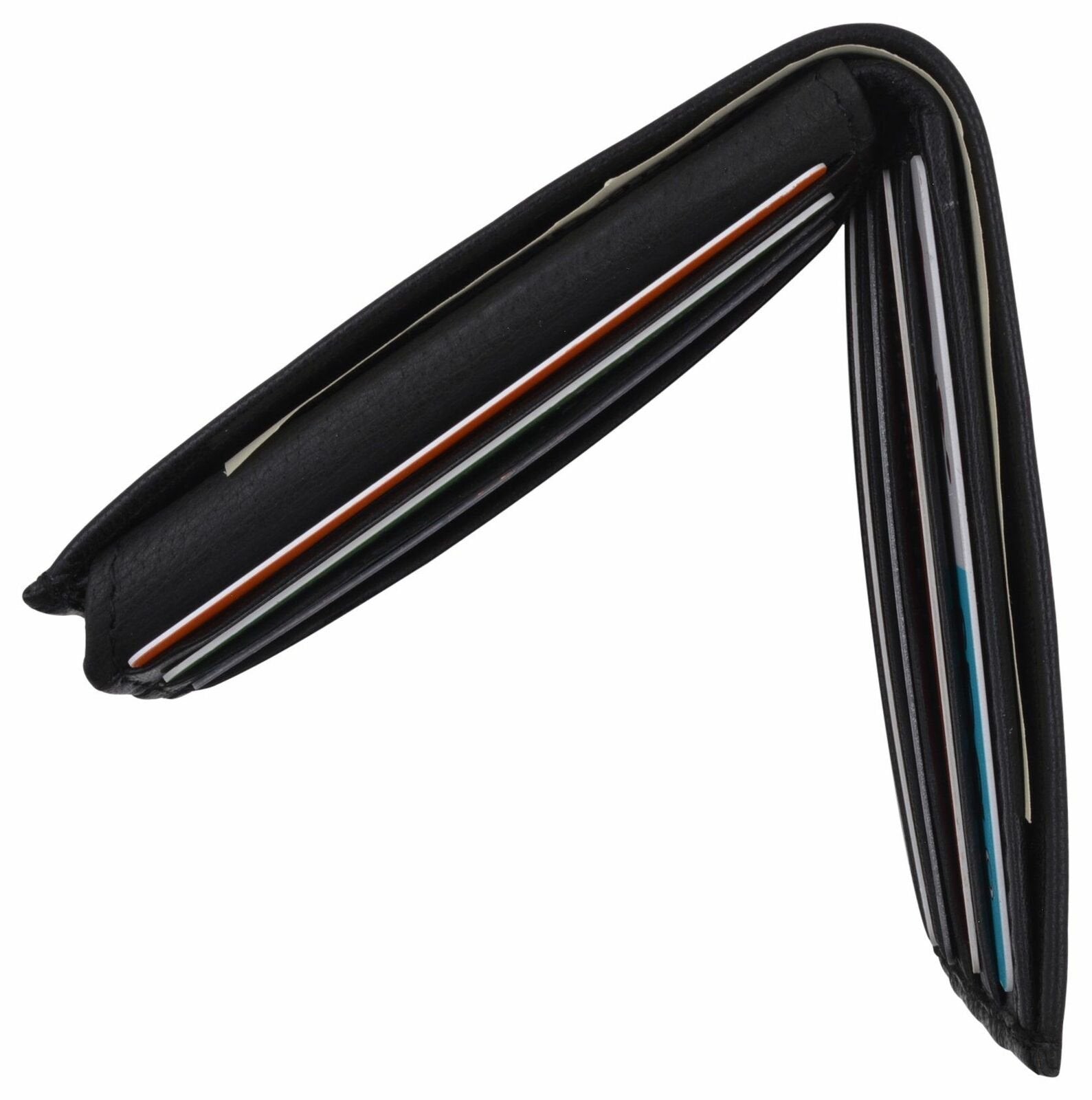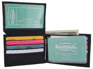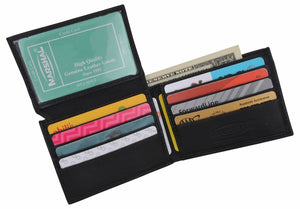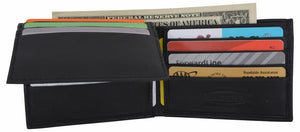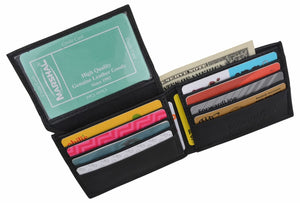 Men's genuine leather bi-fold wallet 9 credit card slots, currency compartment with a divider and a...