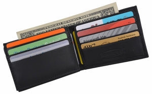 Men's wallet, crafted of fine lamb skin leather, features 6 credit cards slots, a Id...
