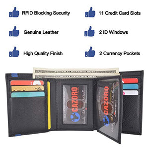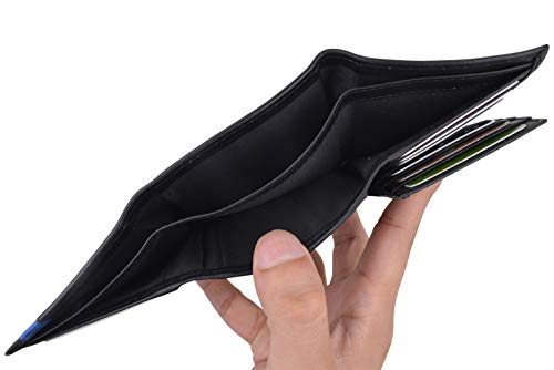 • HUGE CAPACITY YET SLIM - Measuring only 3.2" x 4.15" when closed, our men's wallet has a huge capacity of 11 card slots and 2 ID Window. It even has a 2 currency pockets to keep your money and receipts organized.