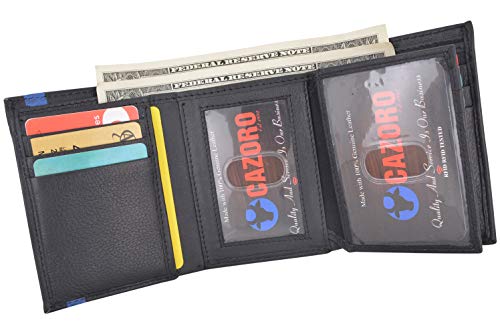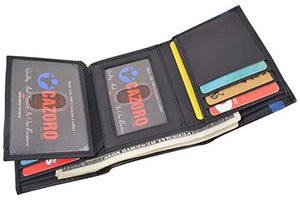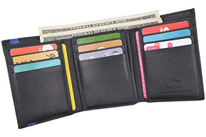 Men's Genuine Soft Leather RFID Trifold Wallet 2 ID Windows & Credit Card Holder Black