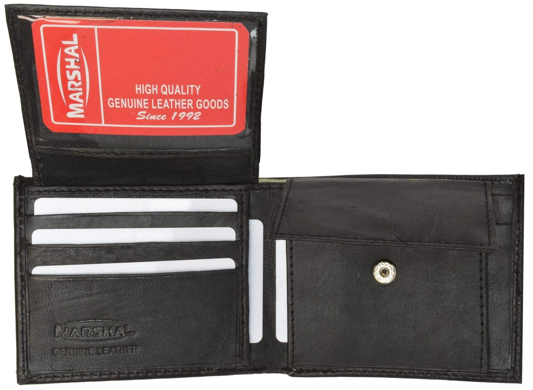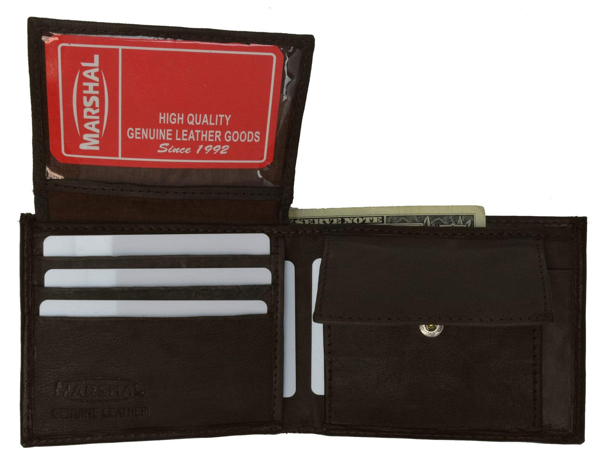 Men's genuine leather bi-fold wallet 9 credit card slots, currency compartment with a divider and a...