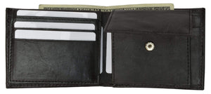 Men's wallet, crafted of fine lamb skin leather, features 6 credit cards slots, a Id...