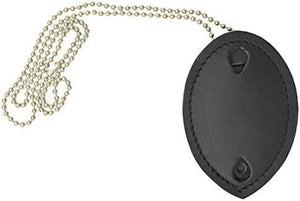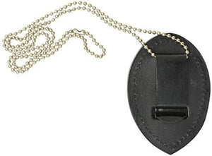 Holds most types of badges. Has a clip to easily clip on the uniform or belt. Also provided with a chain for a neck strap. weighs 2oz.