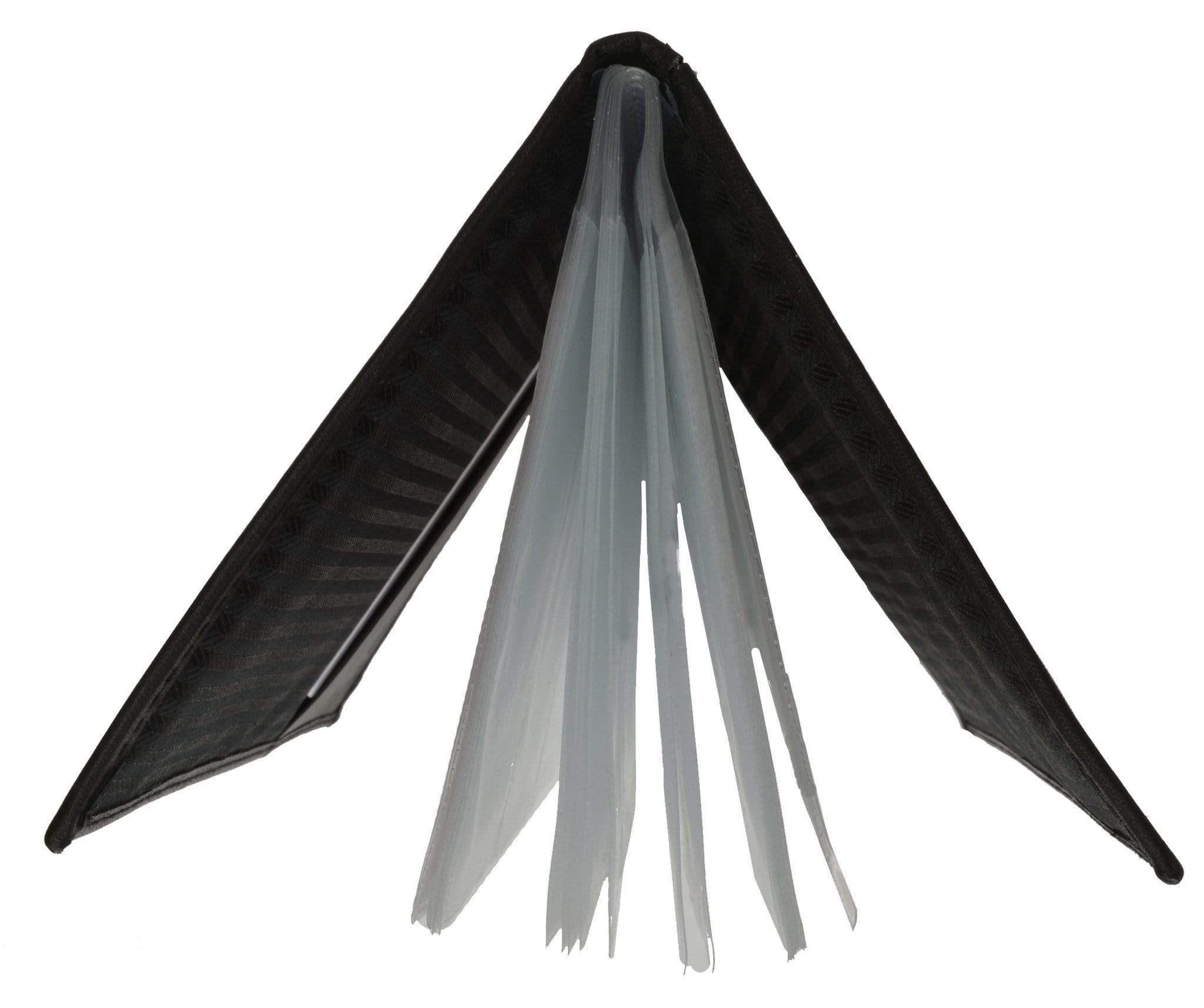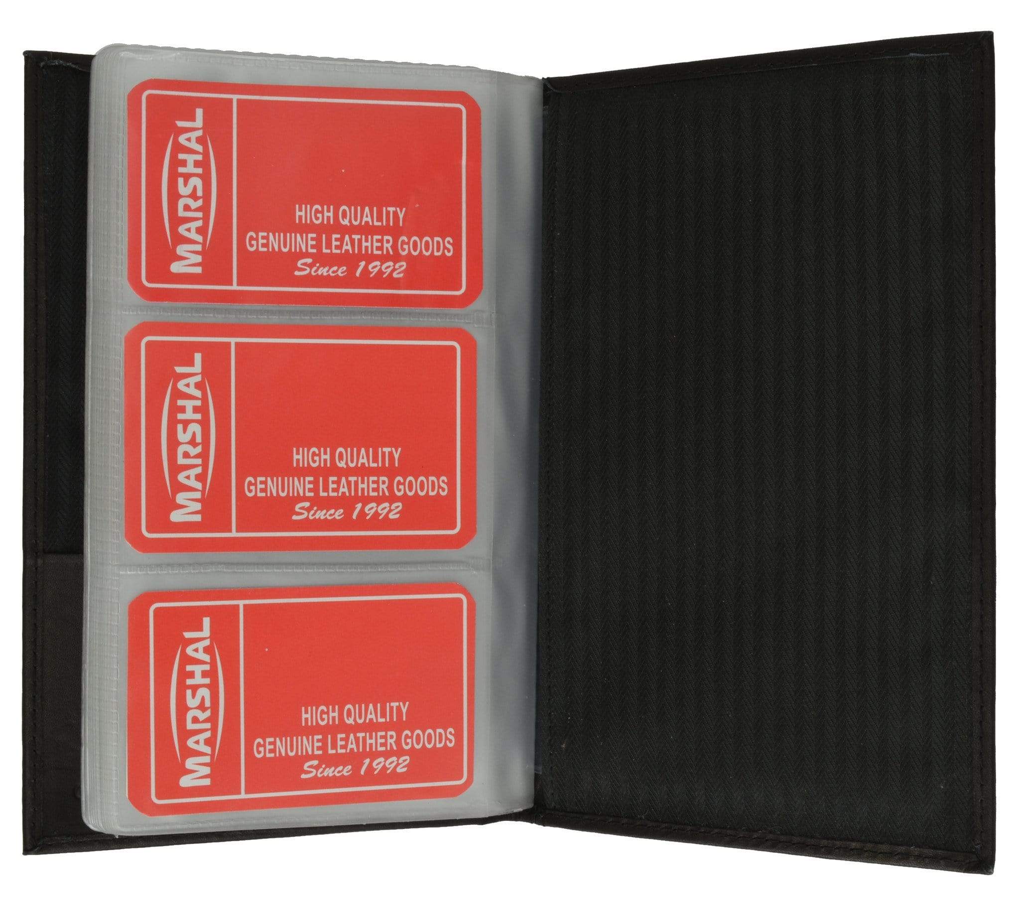 Holds up to 50 business cards in its gusseted pocket! Slotted pocket for extra cards...
