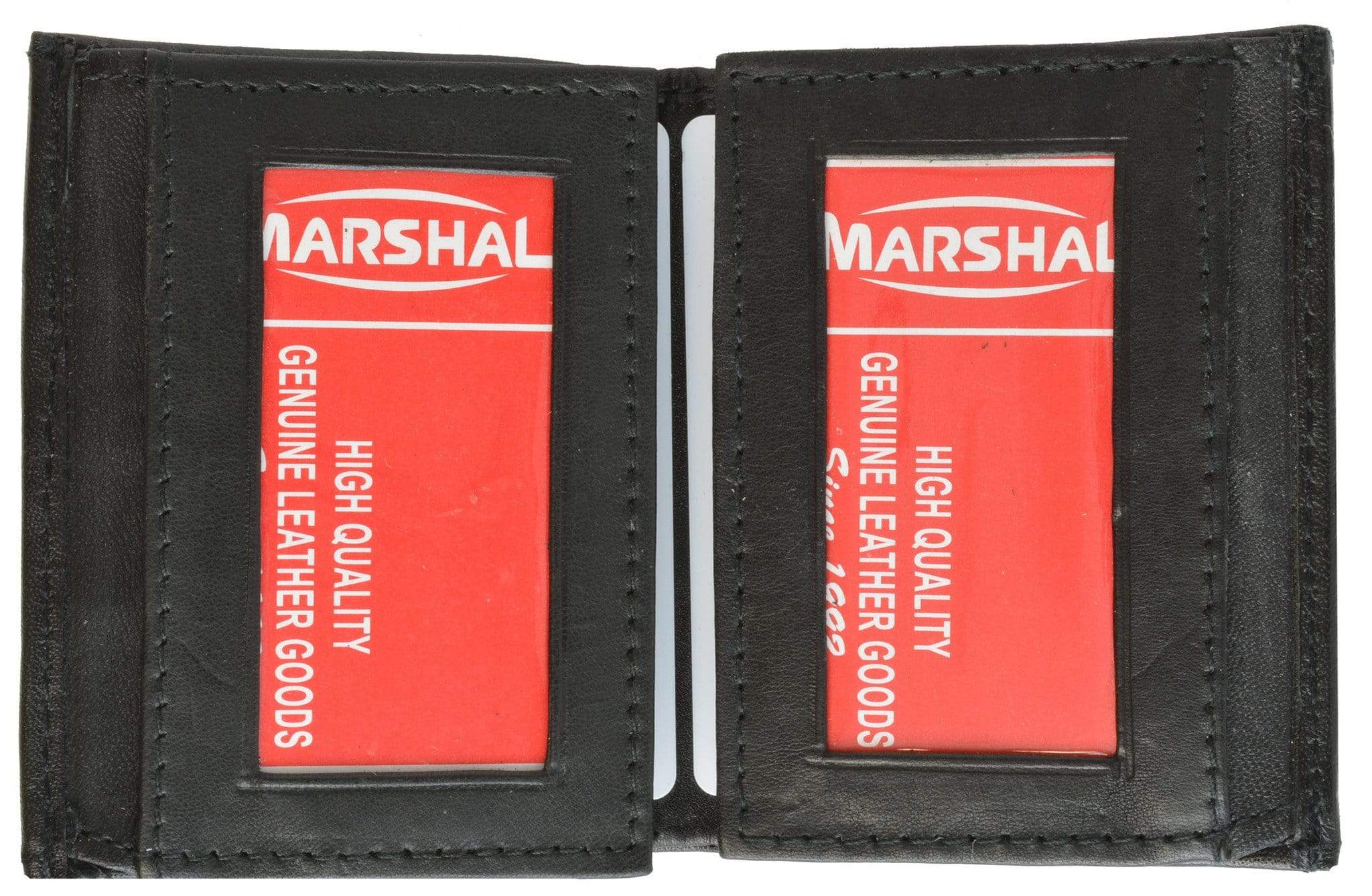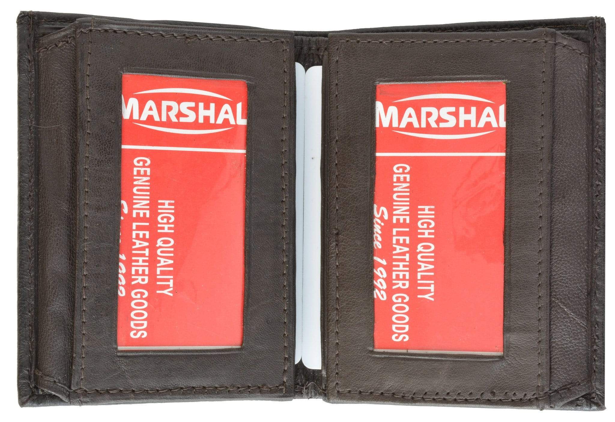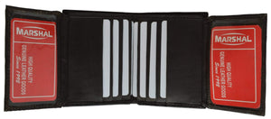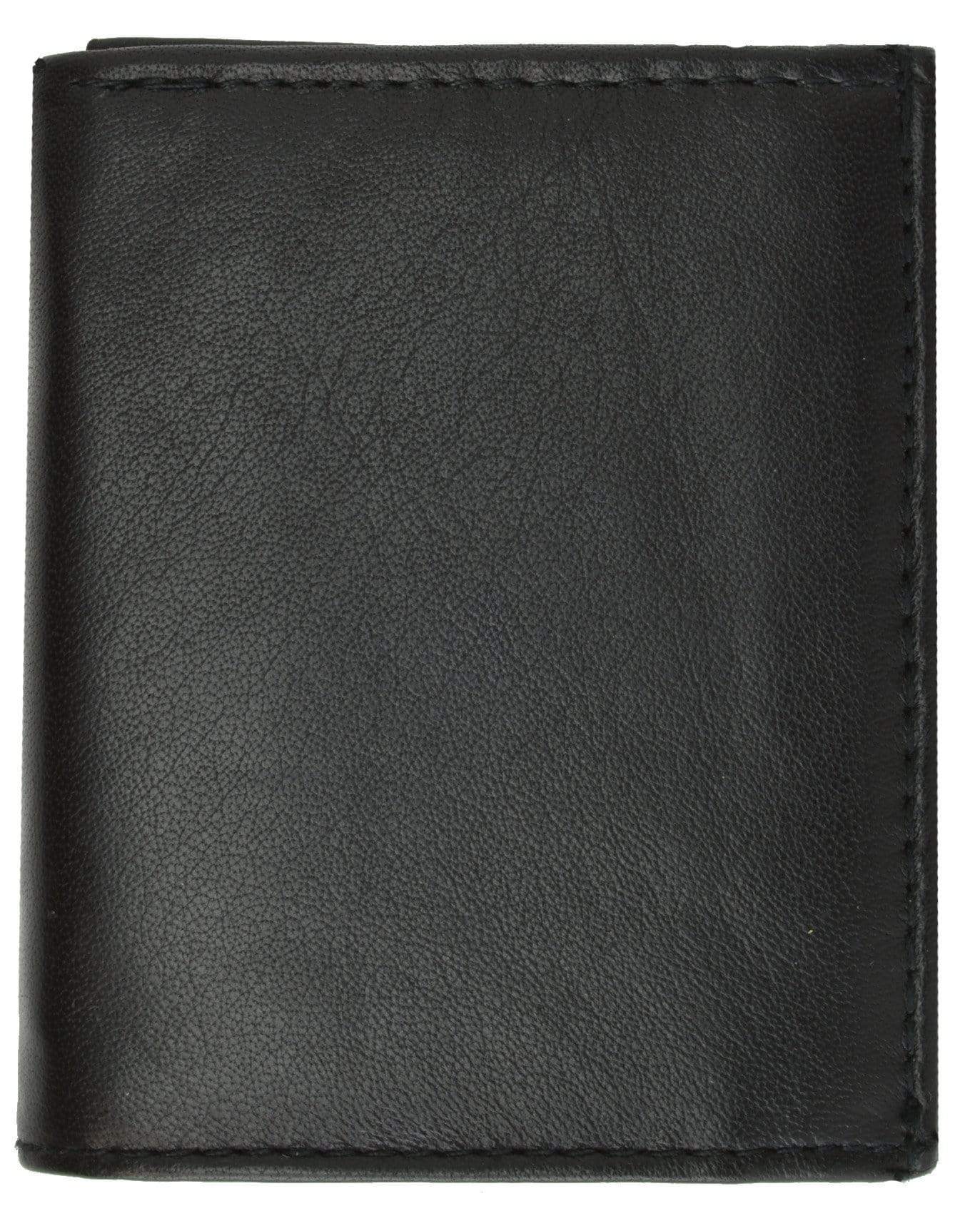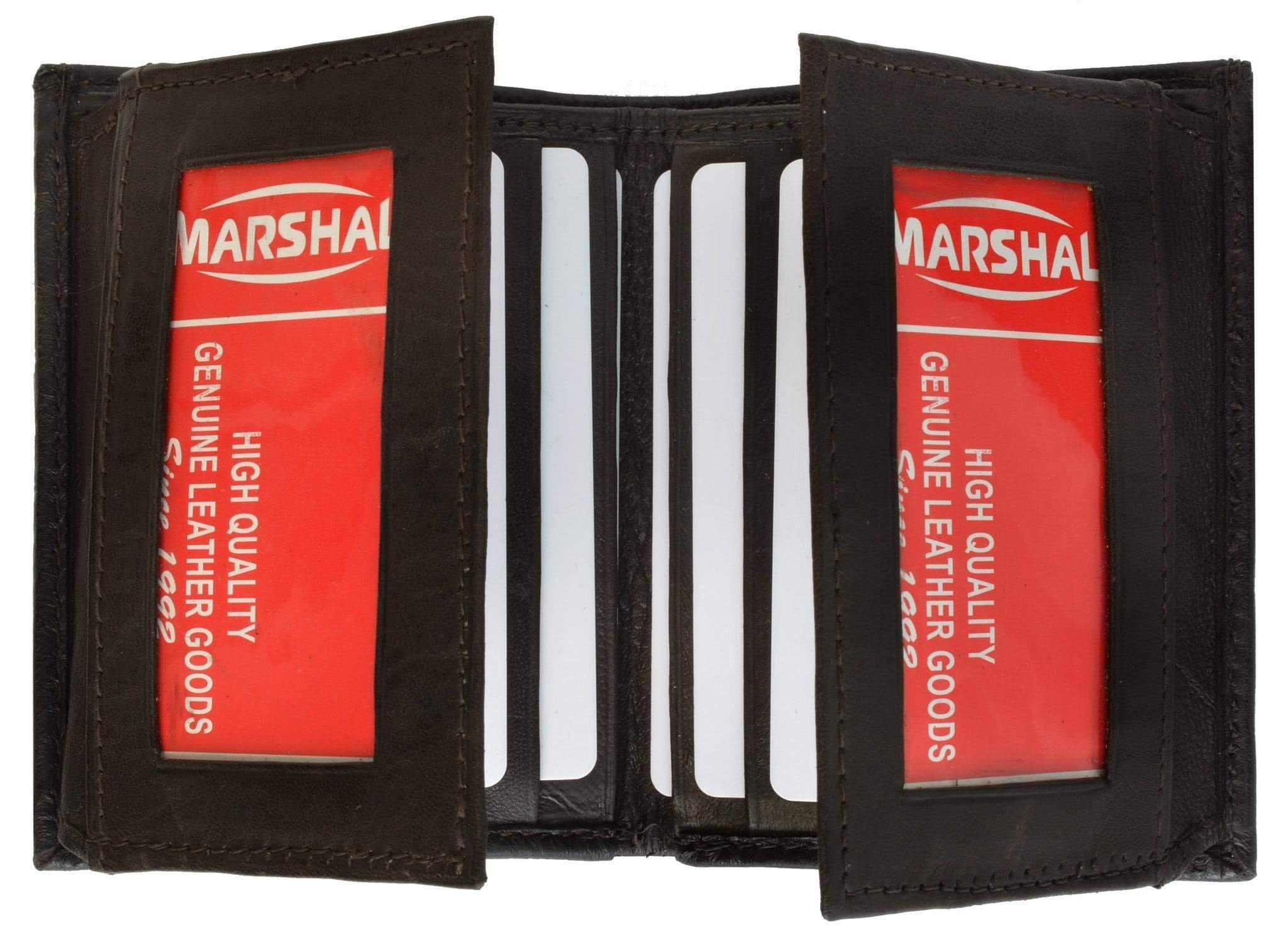 Material: Genuine Leather Tri-fold Credit Card Slots: 8+ I.D. Window: Yes Currency Pocket: Divider; Hideaway...