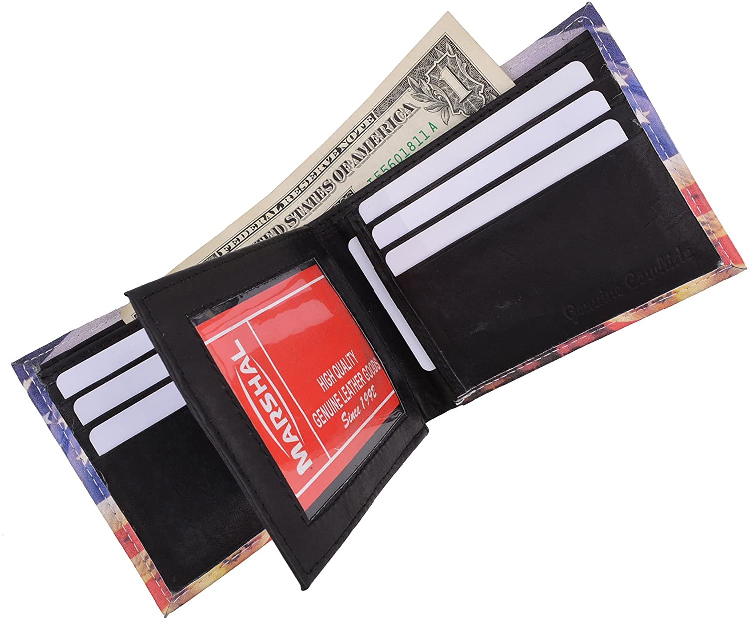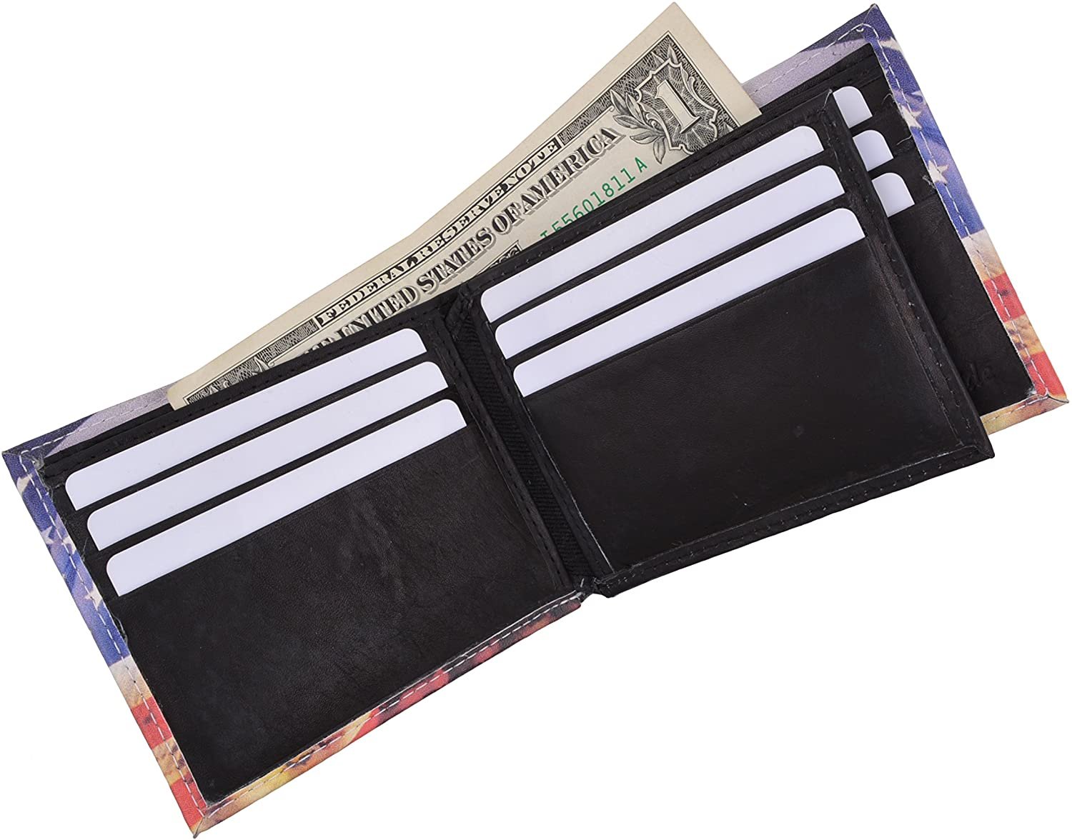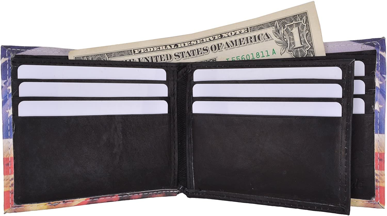Eagle Flag Genuine Leather Men's Bifold Multi Card ID Center Flap Wallet