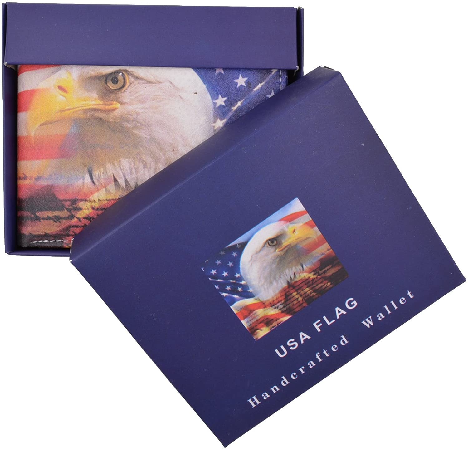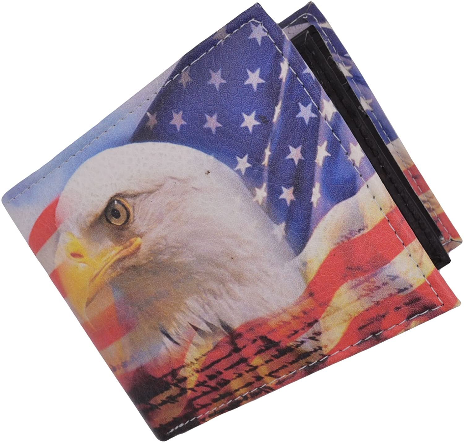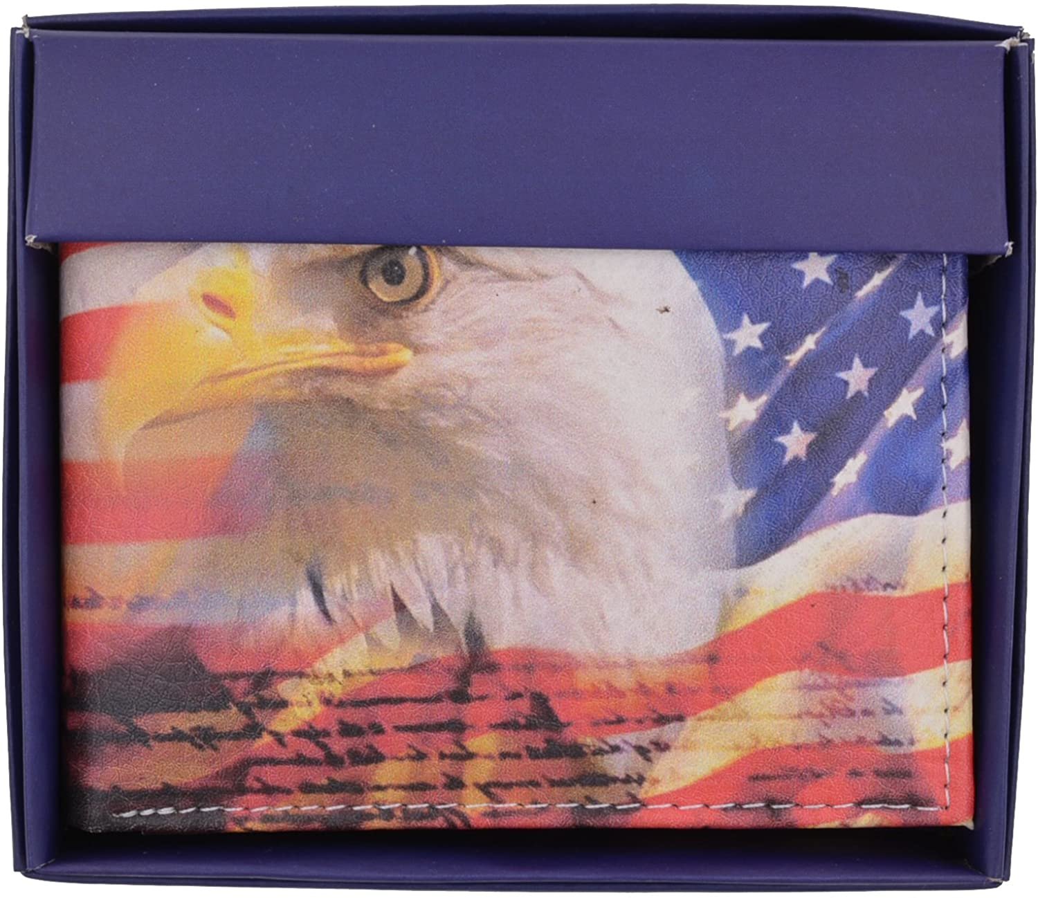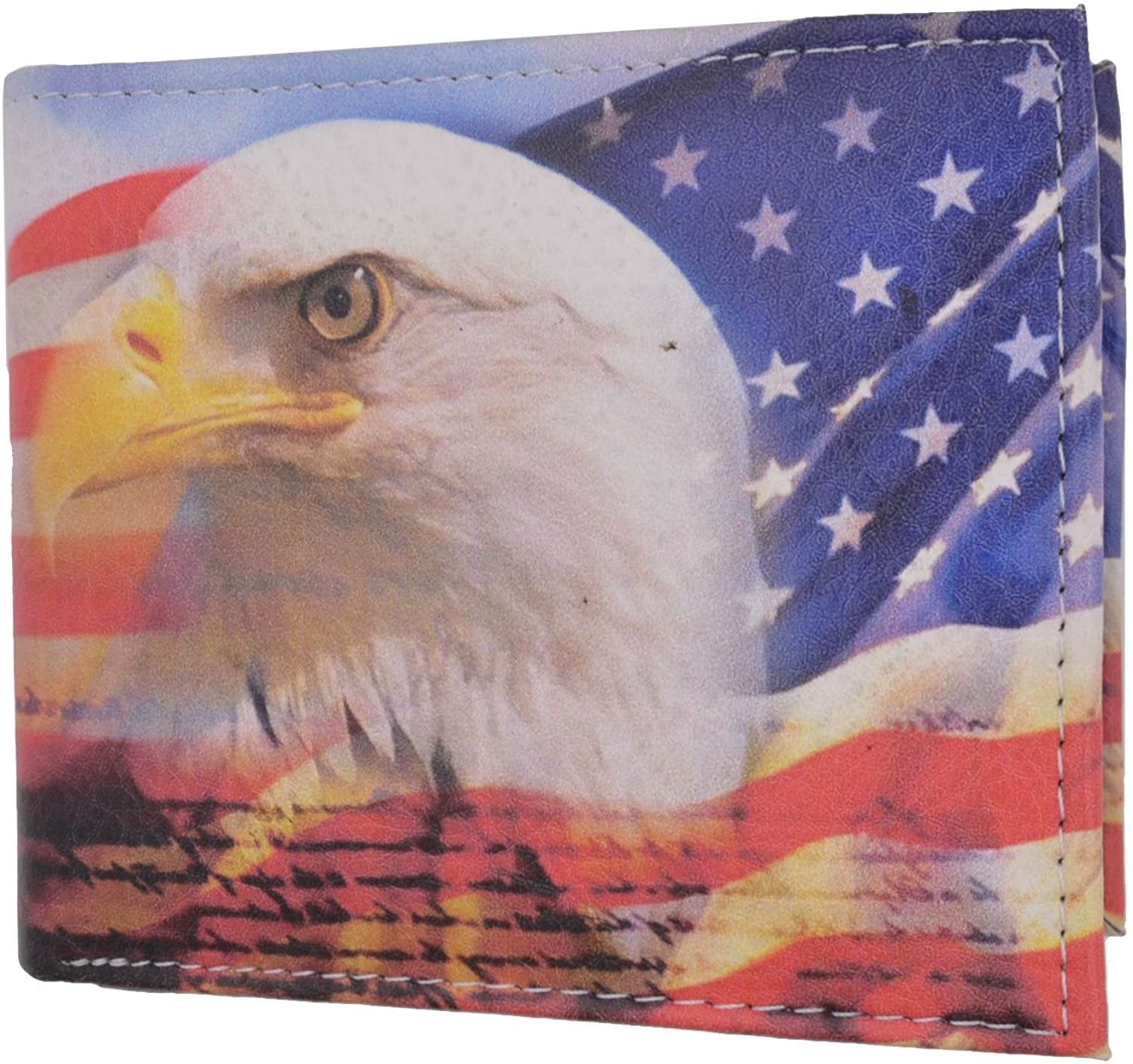 Eagle Flag Genuine Leather Men's Bifold Multi Card ID Center Flap Wallet