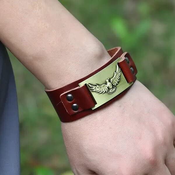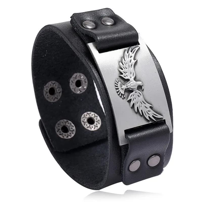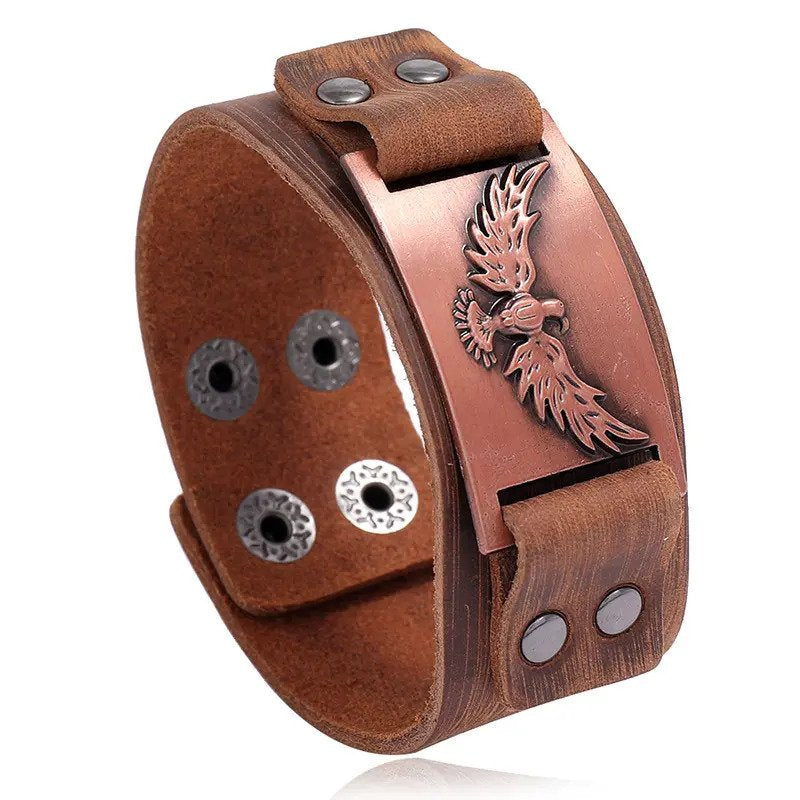 Eagle Leather Bracelet Punk Men's Nordic Bracelet with Blood Eagle - Pagan Jewelry of Talisman