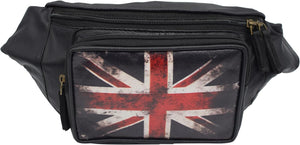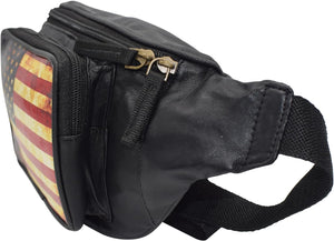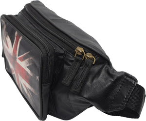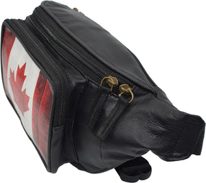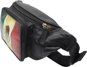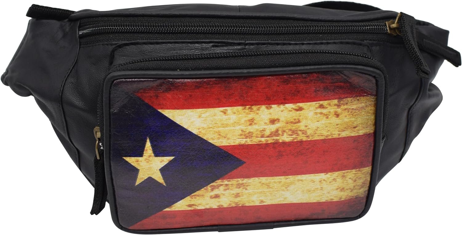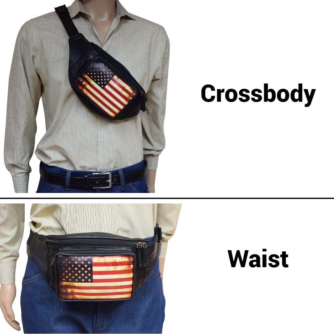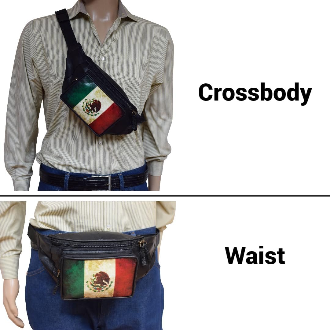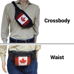Fanny Pack Genuine Leather Adjustable Waist Crossbody Bag for Outdoor Travel with Country Flags USA, UK, CANADA, MEXICO, & PUERTO RICO