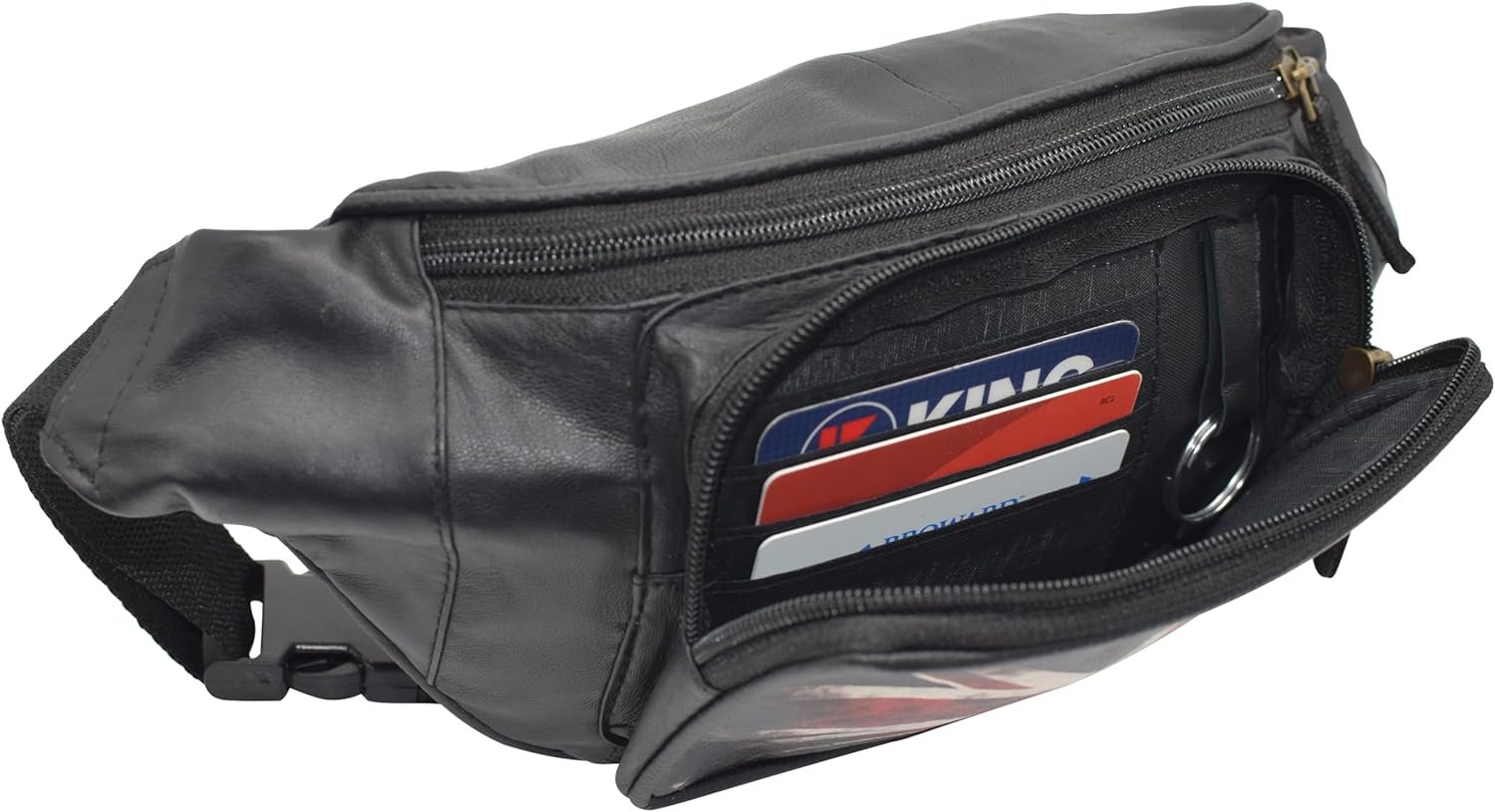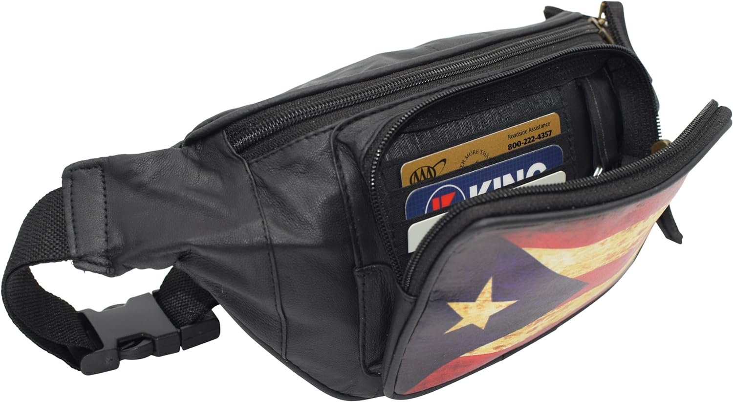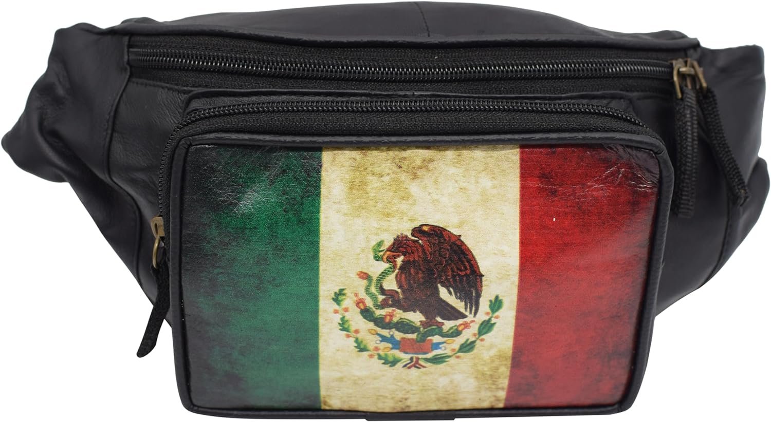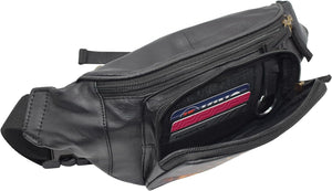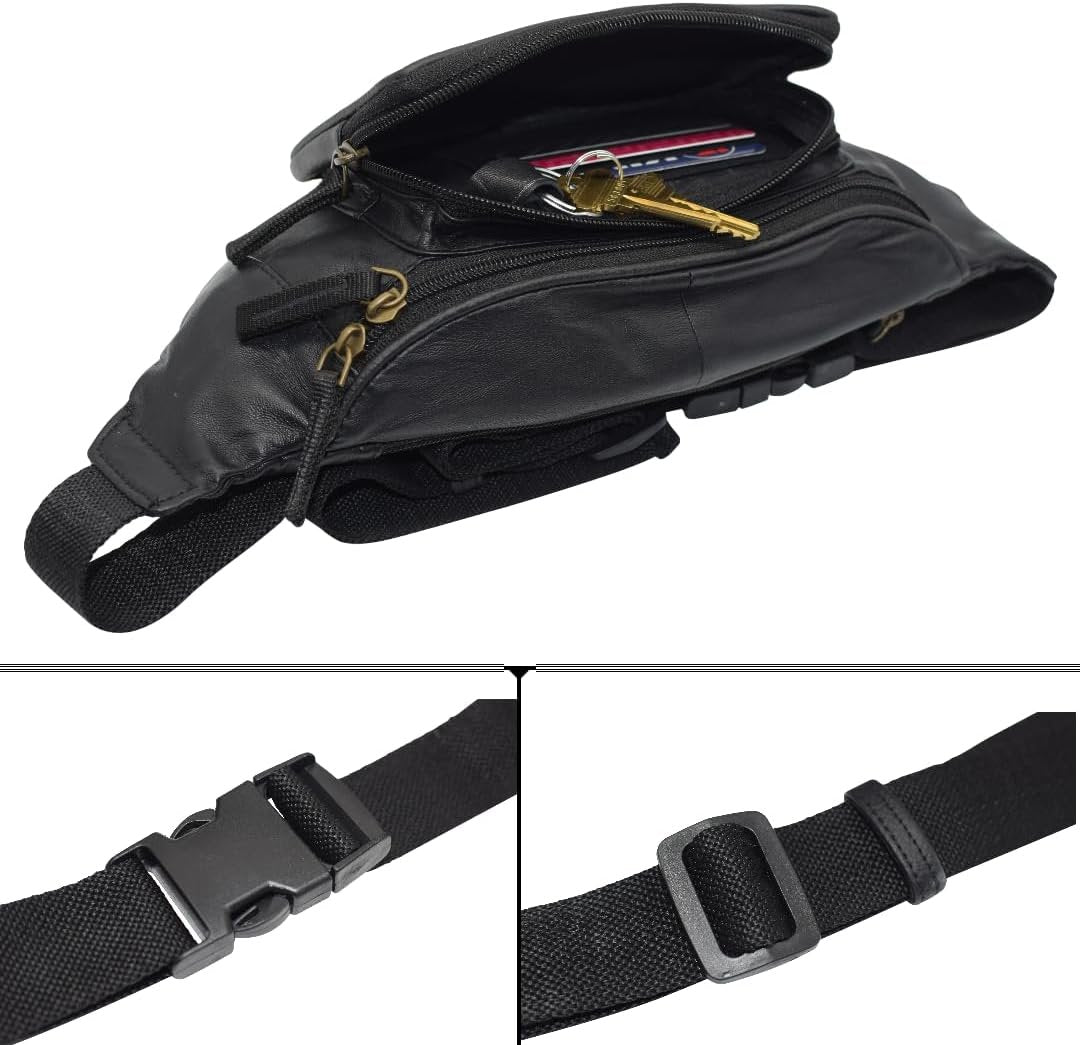 Fanny Pack Genuine Leather Adjustable Waist Crossbody Bag for Outdoor Travel with Country Flags USA, UK, CANADA, MEXICO, & PUERTO RICO