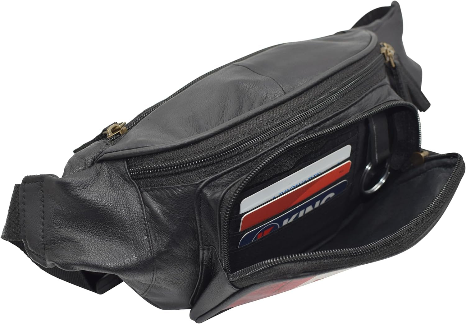 ● DESIGN: 3 zipper compartments. Front compartment has 3 built-in credit card slots & a key ring. Main compartment can easily fit wallet, sunglasses, passports, cellphone, etc.