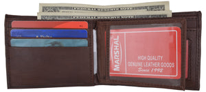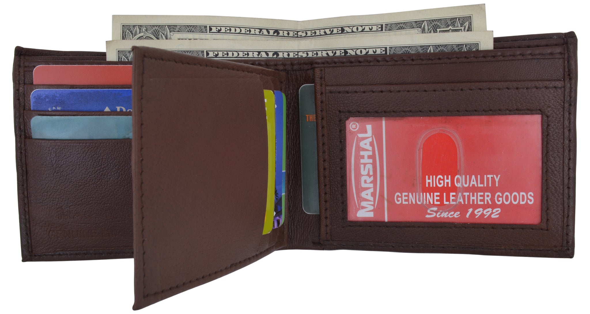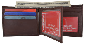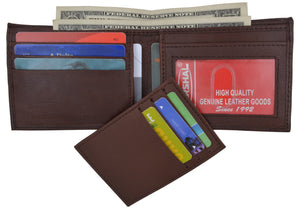 Men's genuine leather bi-fold wallet 9 credit card slots, currency compartment with a divider and a...