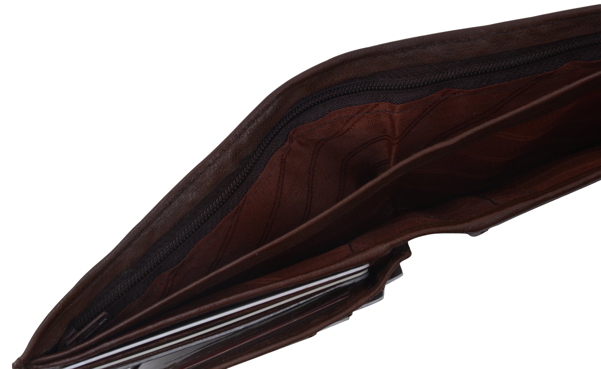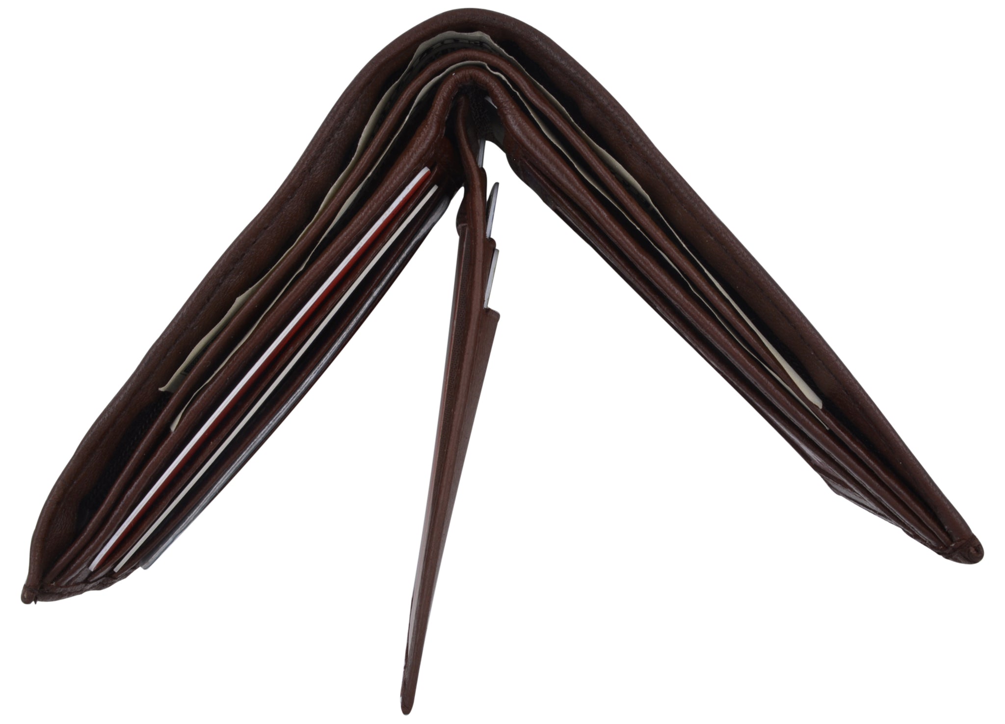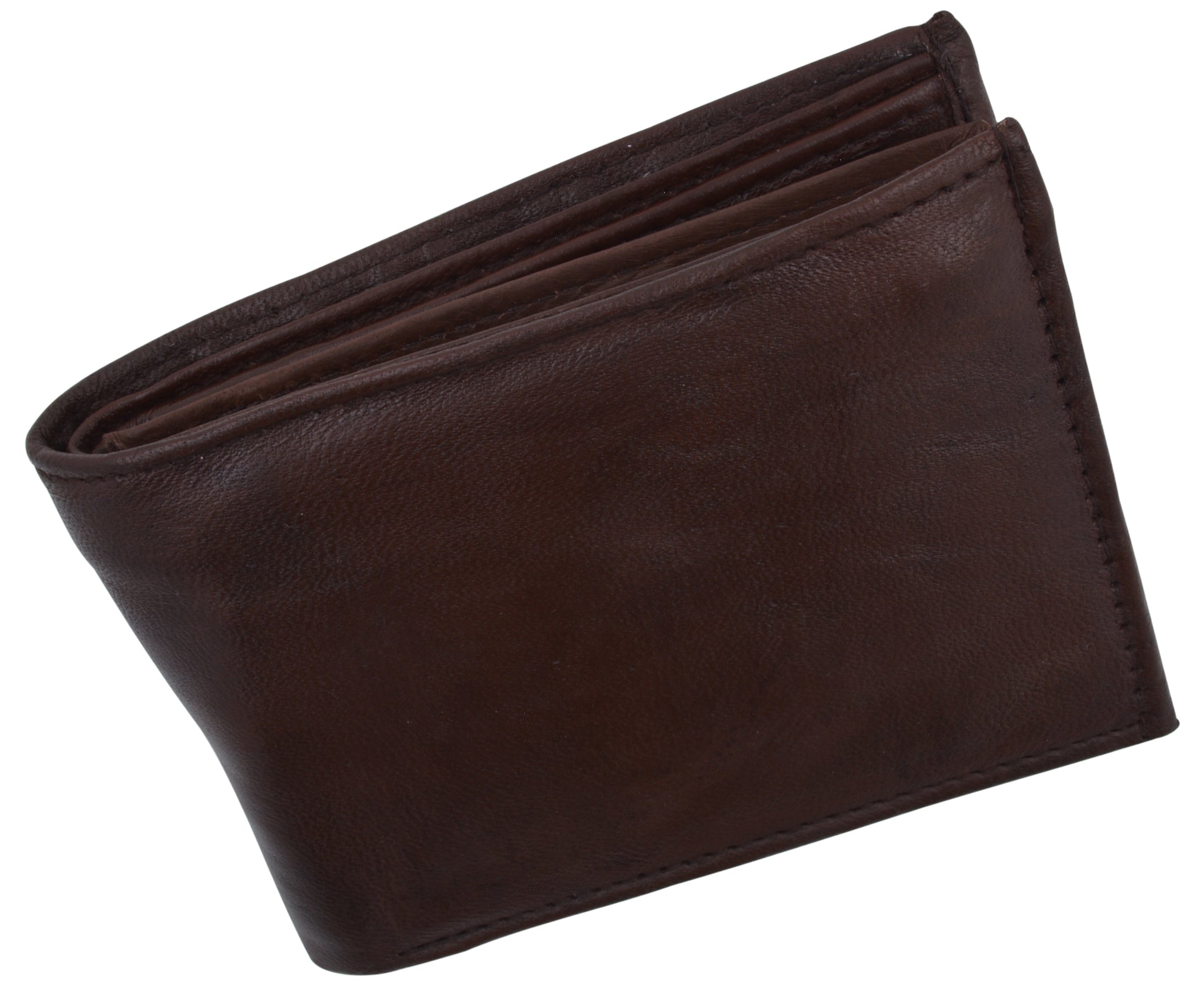 Men's wallet, crafted of fine lamb skin leather, features 6 credit cards slots, a Id...