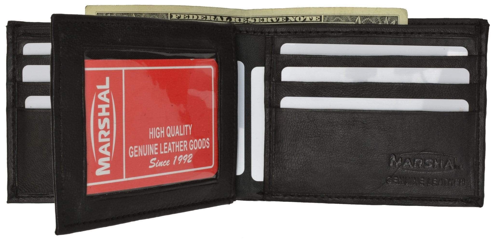 Men's genuine leather bi-fold wallet 9 credit card slots, currency compartment with a divider and a...