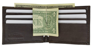 Men's genuine leather bi-fold wallet 9 credit card slots, currency compartment with a divider and a...