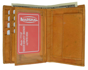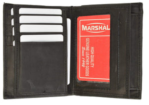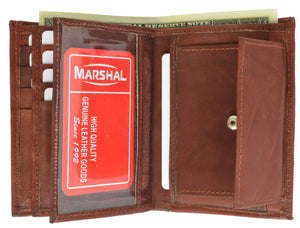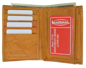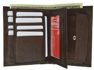 Men's genuine leather bi-fold wallet 9 credit card slots, currency compartment with a divider and a...