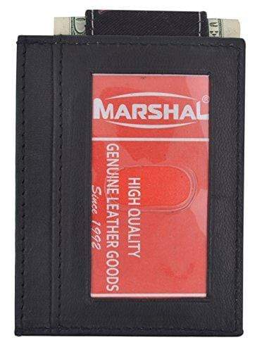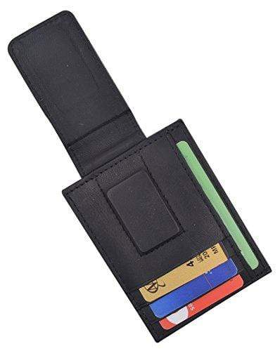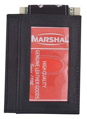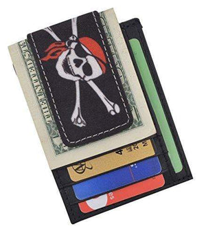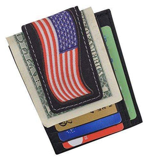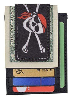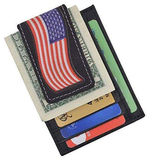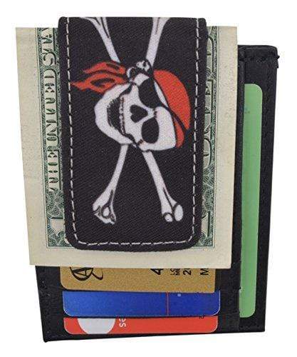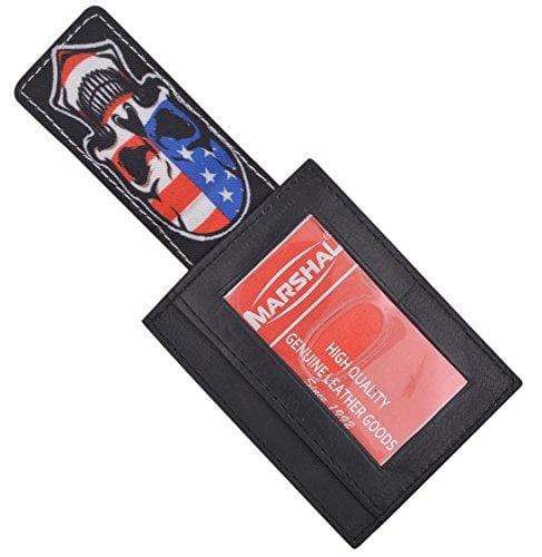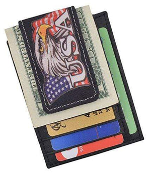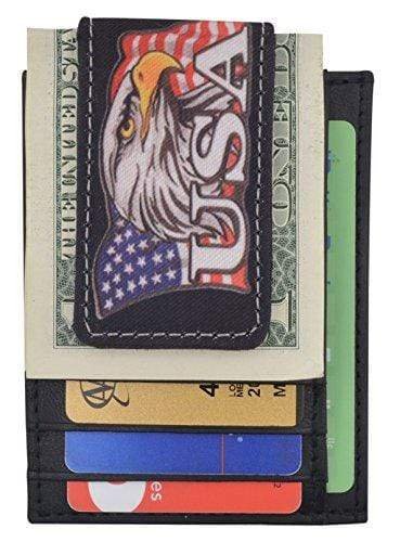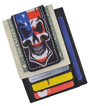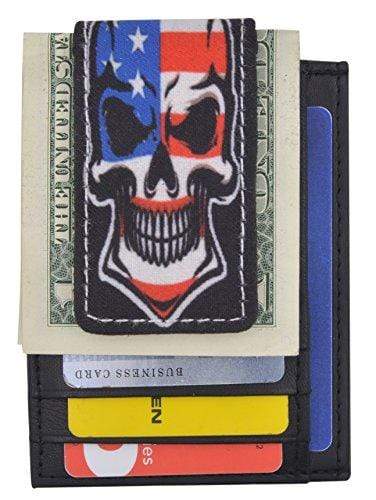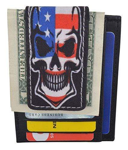 Genuine Leather Front Pocket Magnetic Money Clip Slim Minimalist Wallet Skull Bone USA Skull USA Flag Eagle USA Logos