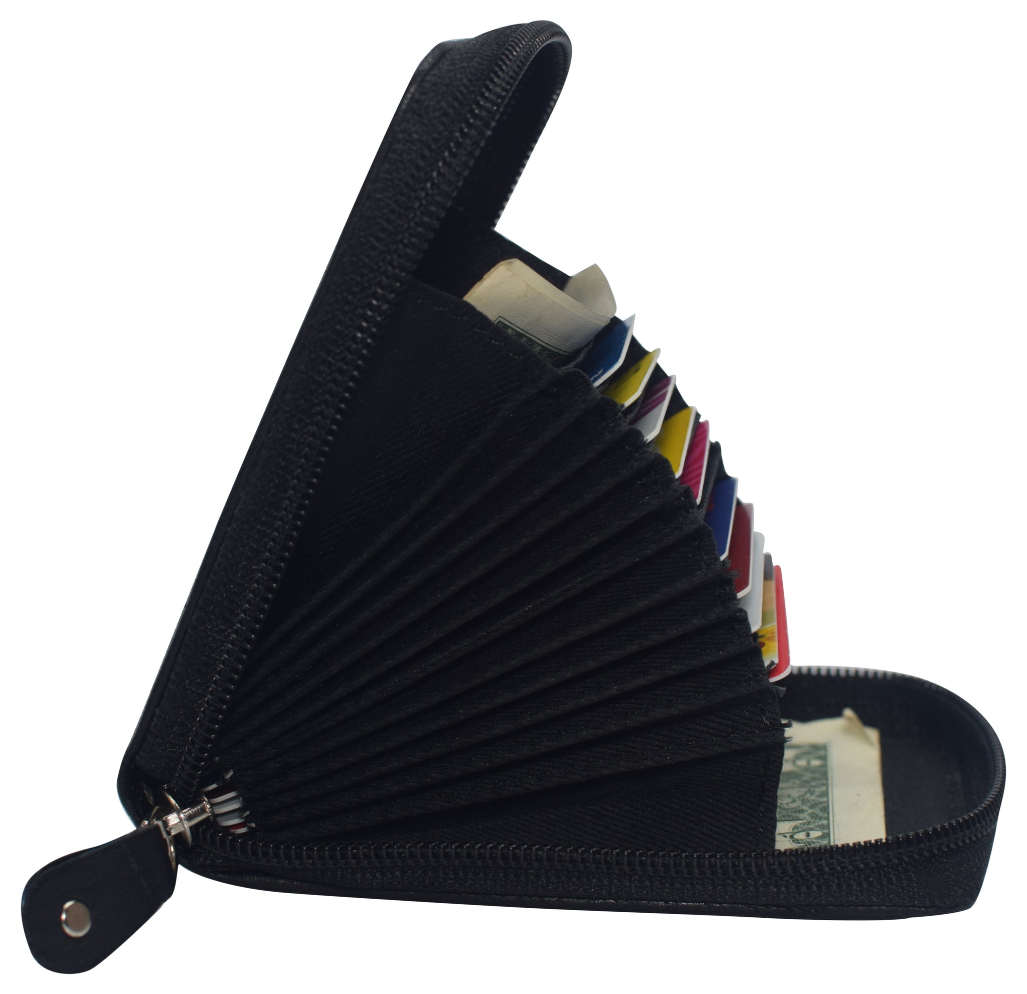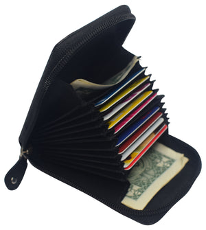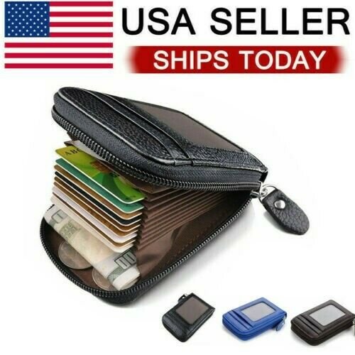 Genuine Leather Men Wallet Credit Card Holder RFID Blocking Zipper Pocket Thin