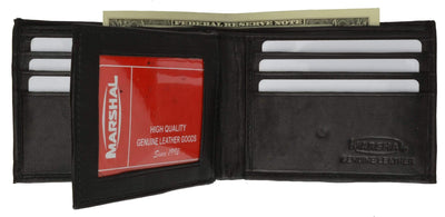 Men's genuine leather bi-fold wallet 9 credit card slots, currency compartment with a divider and a...