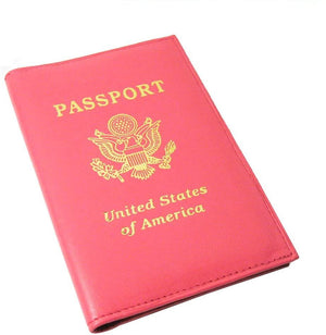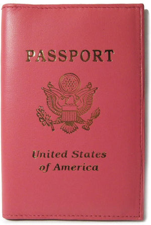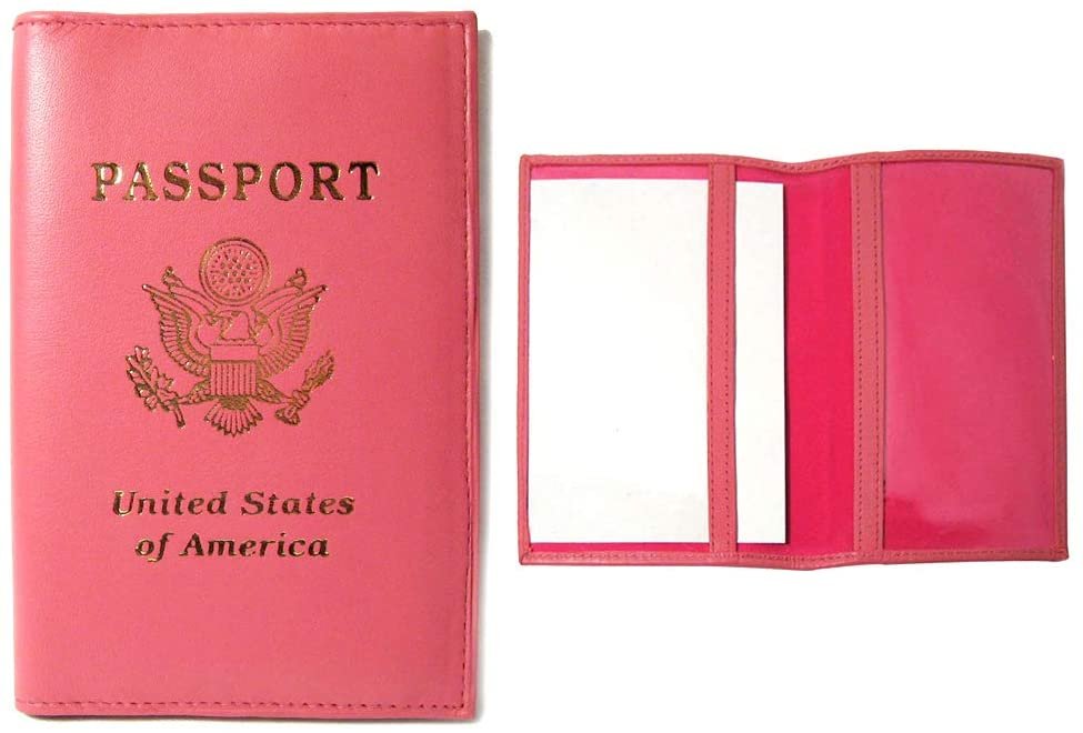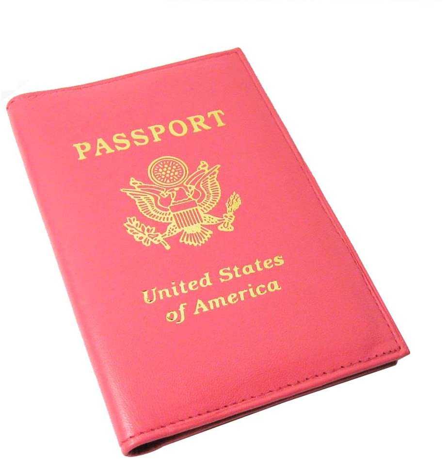 Genuine Leather Passport Cover Pink CASE Holder Wallet Travel US Seal Gold Girls