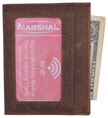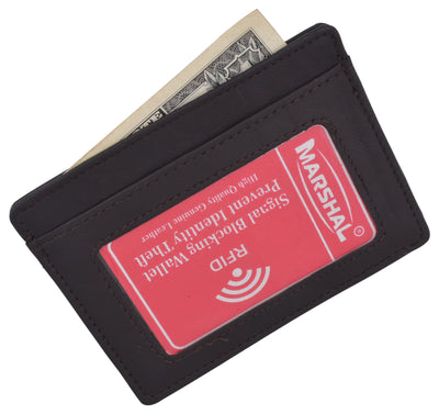 Genuine Leather Slim Card Holder Wallets For Men - Minimalist RFID Blocking Marshal