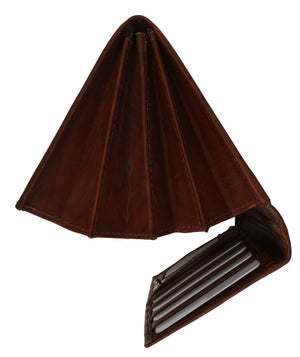 Material: Genuine LeatherSize: 7.2" x 4.2" (folded) approxCredit Card Slots: 9+I.D. Window: Yes (Internal)Currency Pocket:...